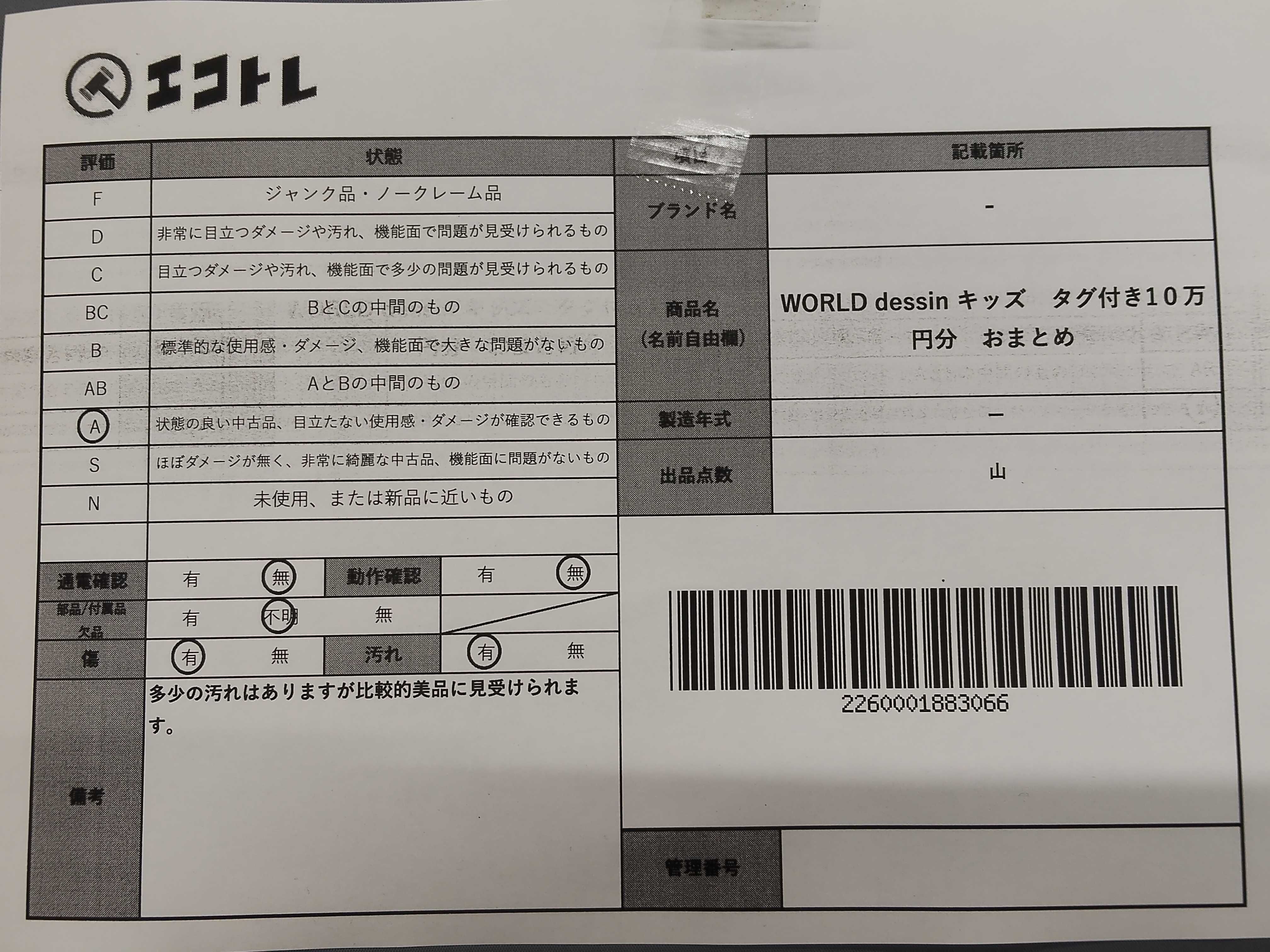 商品内容によって、JITBOXなどでの発送となる可能性がございます事ご理解下さい。年式などの商品情報詳細は写真にてご確認願います。※ご入札の際はご利用規約をよくお読みになってからのご参加お願いします。","タイプライン": "", "カテゴリ": "アパレル", "形状コード": "その他アパレル", "付属品コード": "", "シリアル・シール・型番": ""