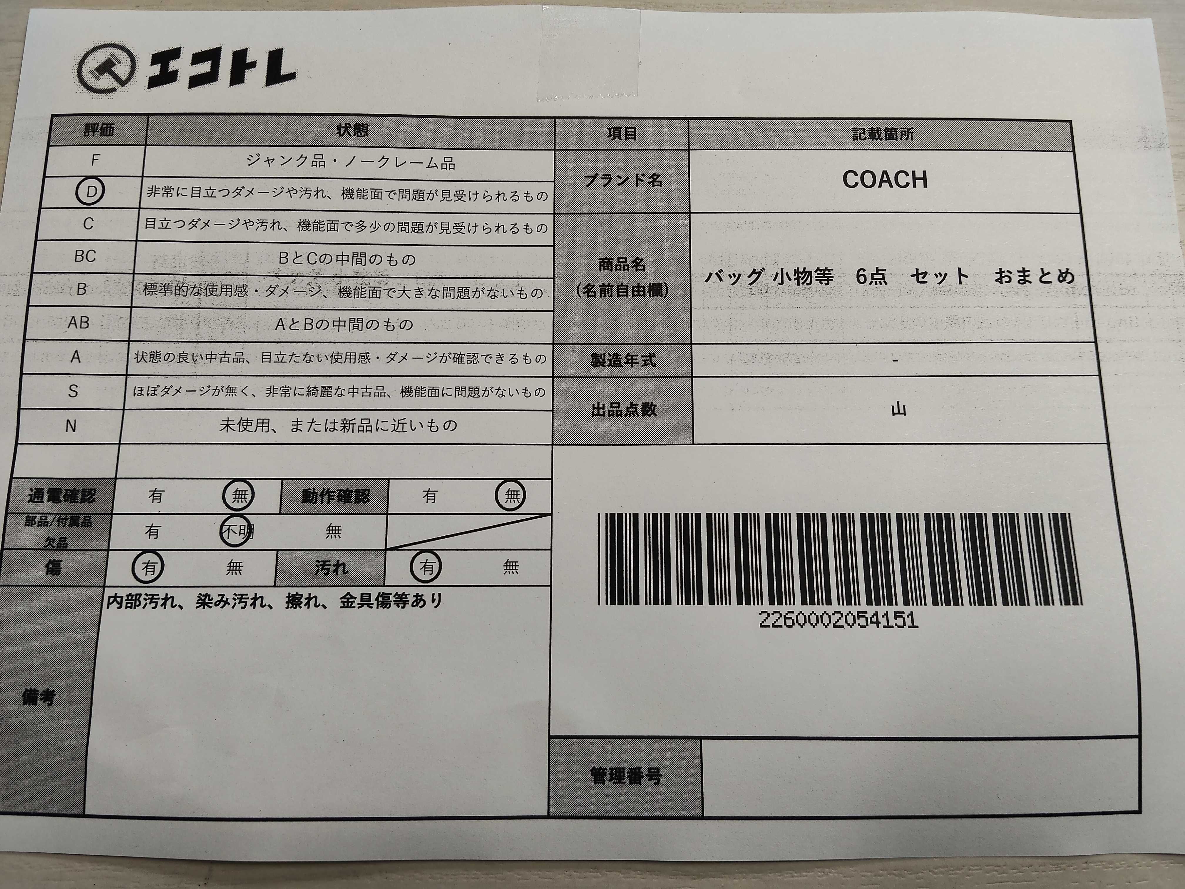 商品内容によって、JITBOXなどでの発送となる可能性がございます事ご理解下さい。年式などの商品情報詳細は写真にてご確認願います。※ご入札の際はご利用規約をよくお読みになってからのご参加お願いします。","タイプライン": "", "カテゴリ": "バッグ", "形状コード": "バッグ", "付属品コード": "", "シリアル・シール・型番": ""