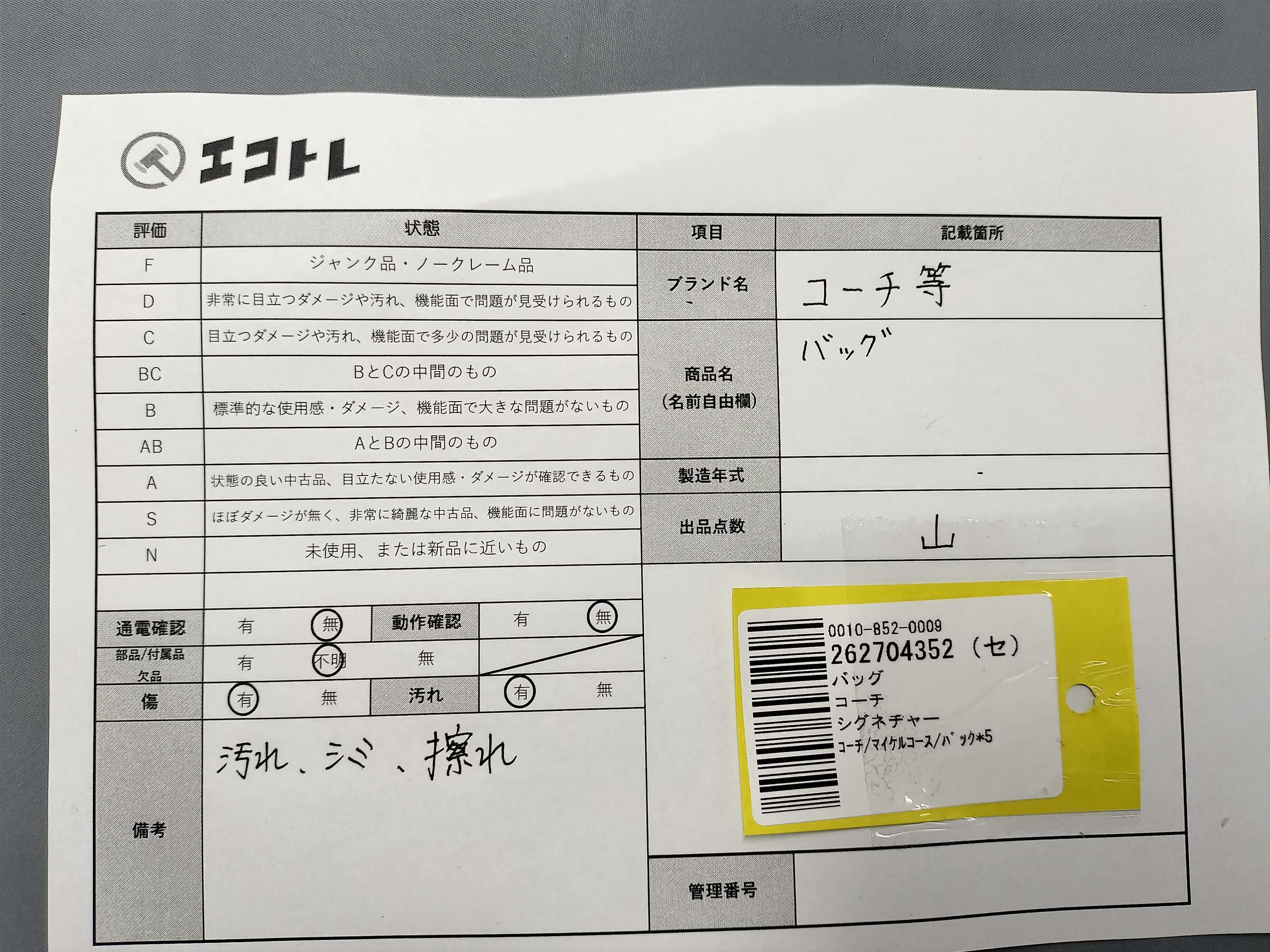 使用感明显,瑕疵和污渍明显