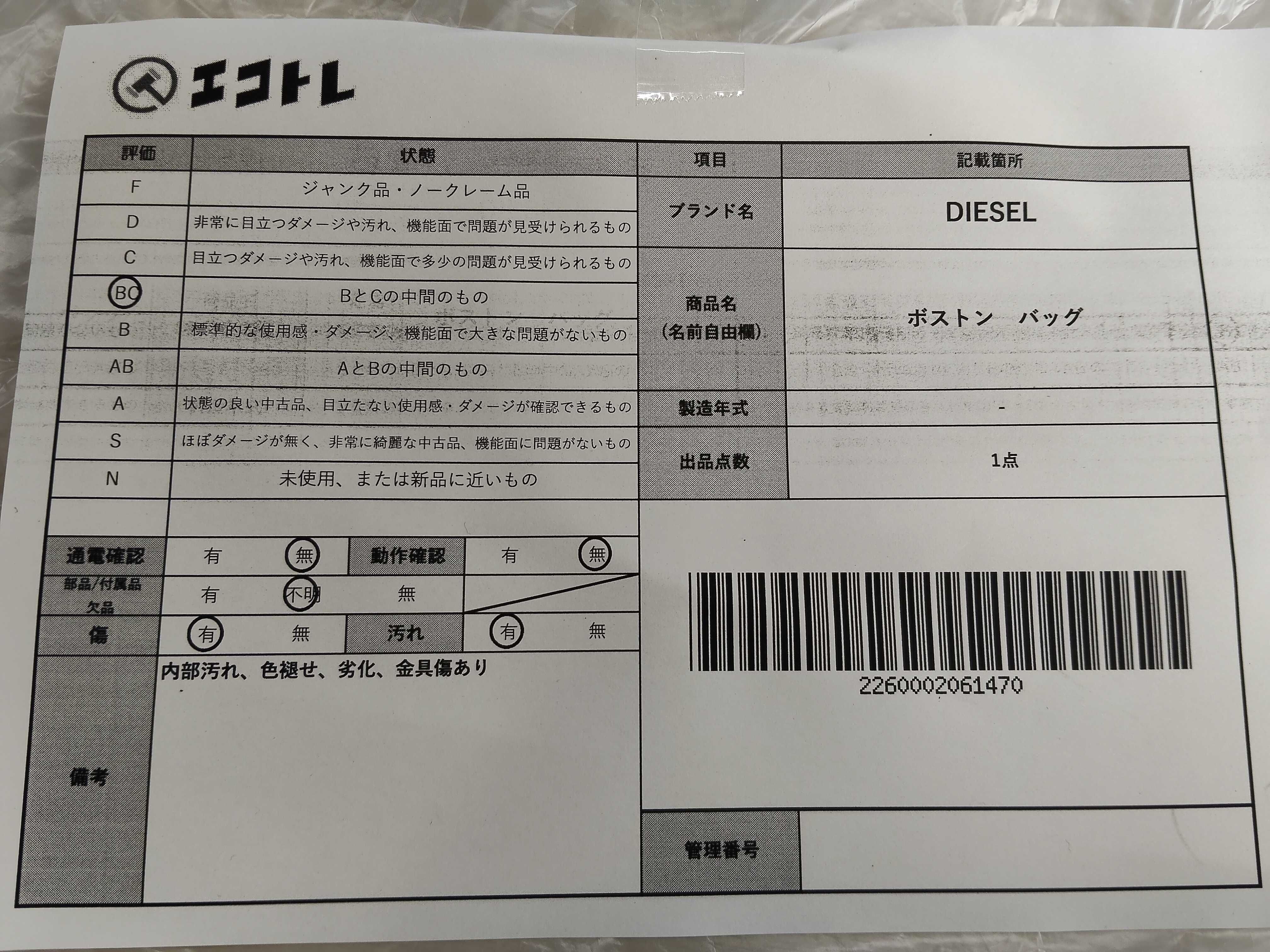 商品内容によって、JITBOXなどでの発送となる可能性がございます事ご理解下さい。年式などの商品情報詳細は写真にてご確認願います。※ご入札の際はご利用規約をよくお読みになってからのご参加お願いします。","タイプライン": "", "カテゴリ": "バッグ", "形状コード": "ボストンバッグ", "付属品コード": "", "シリアル・シール・型番": ""