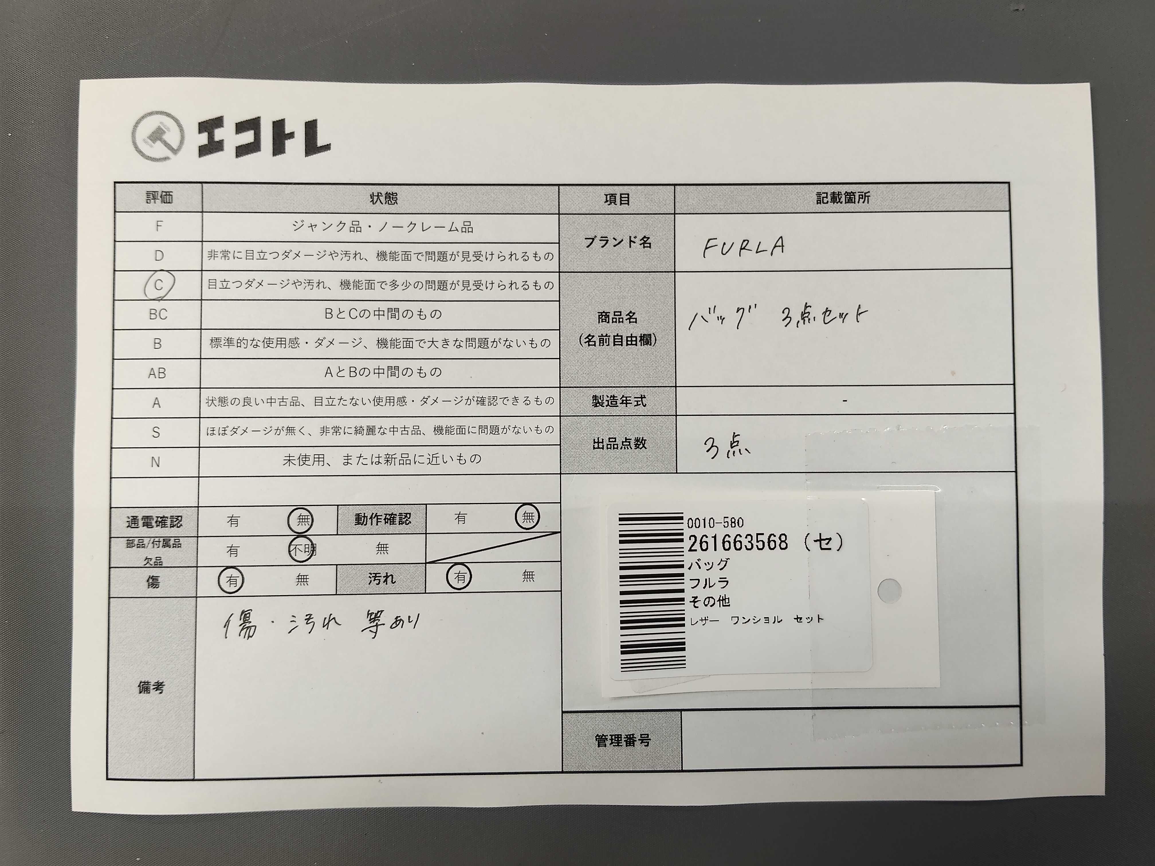 商品内容によって、JITBOXなどでの発送となる可能性がございます事ご理解下さい。年式などの商品情報詳細は写真にてご確認願います。※ご入札の際はご利用規約をよくお読みになってからのご参加お願いします。","タイプライン": "", "カテゴリ": "バッグ", "形状コード": "バッグ", "付属品コード": "", "シリアル・シール・型番": ""