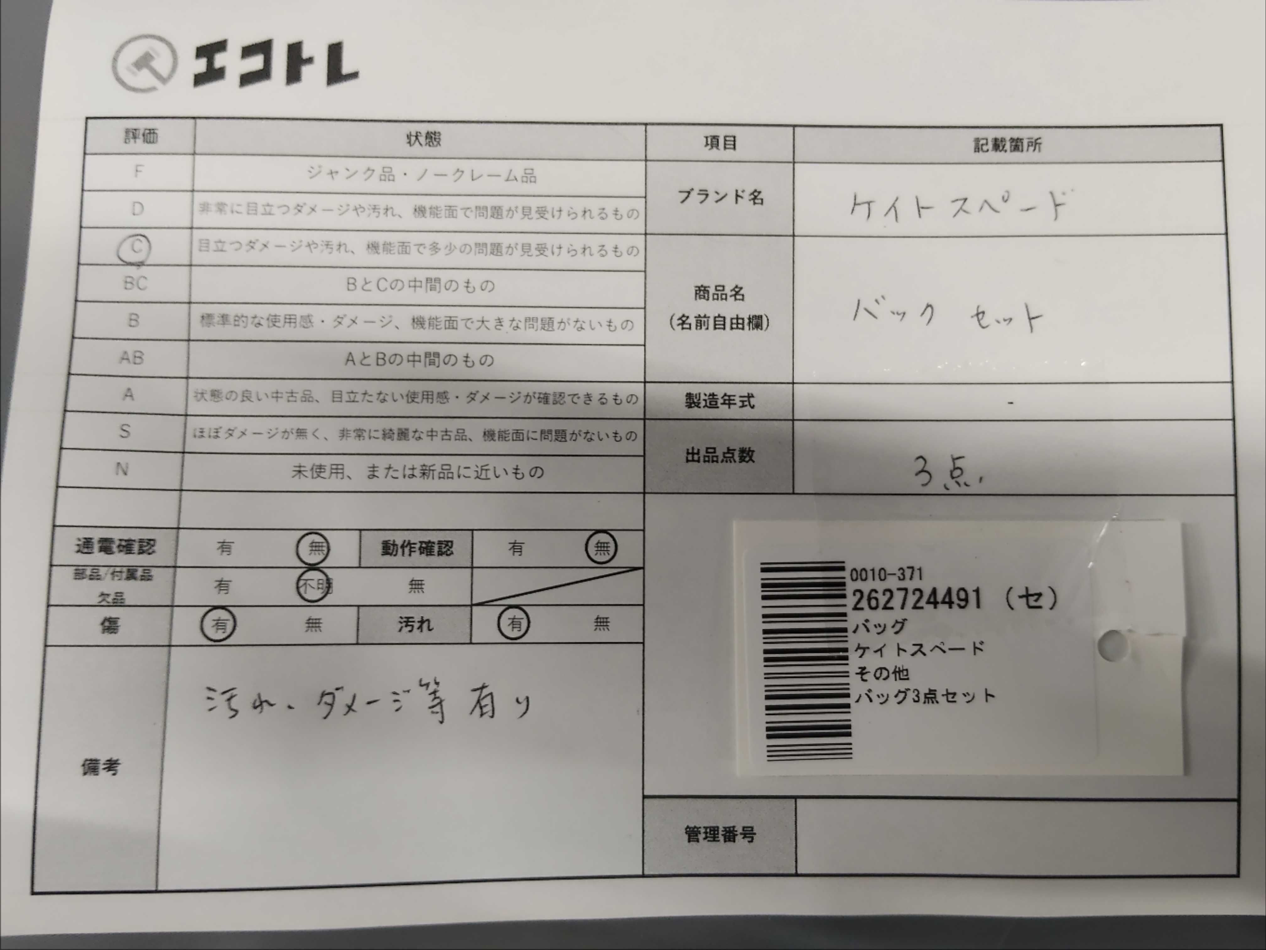 商品内容によって、JITBOXなどでの発送となる可能性がございます事ご理解下さい。年式などの商品情報詳細は写真にてご確認願います。※ご入札の際はご利用規約をよくお読みになってからのご参加お願いします。","タイプライン": "", "カテゴリ": "バッグ", "形状コード": "バッグ", "付属品コード": "", "シリアル・シール・型番": ""