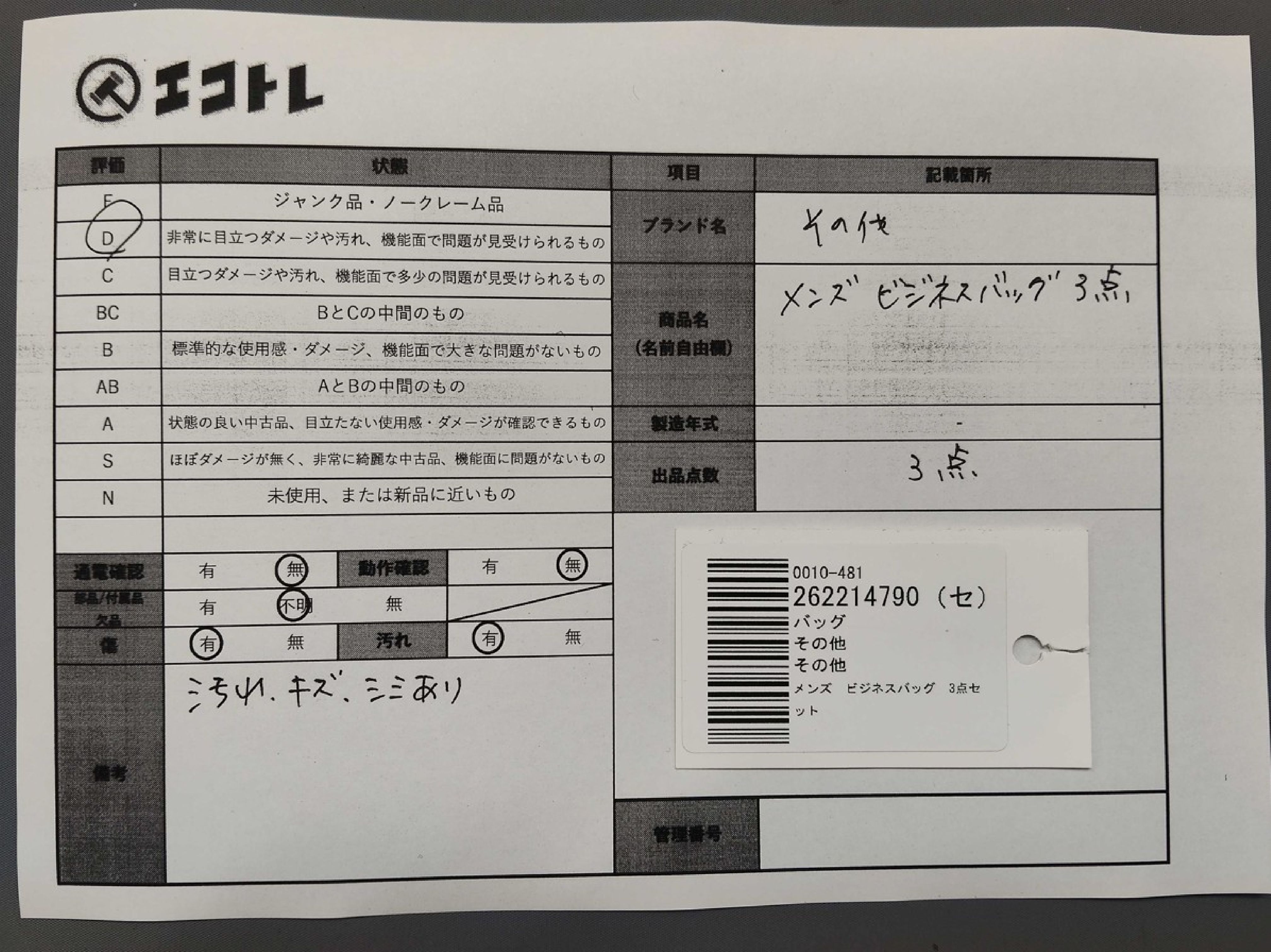 商品内容によって、JITBOXなどでの発送となる可能性がございます事ご理解下さい。年式などの商品情報詳細は写真にてご確認願います。※ご入札の際はご利用規約をよくお読みになってからのご参加お願いします。","タイプライン": "", "カテゴリ": "バッグ", "形状コード": "バッグ", "付属品コード": "", "シリアル・シール・型番": ""