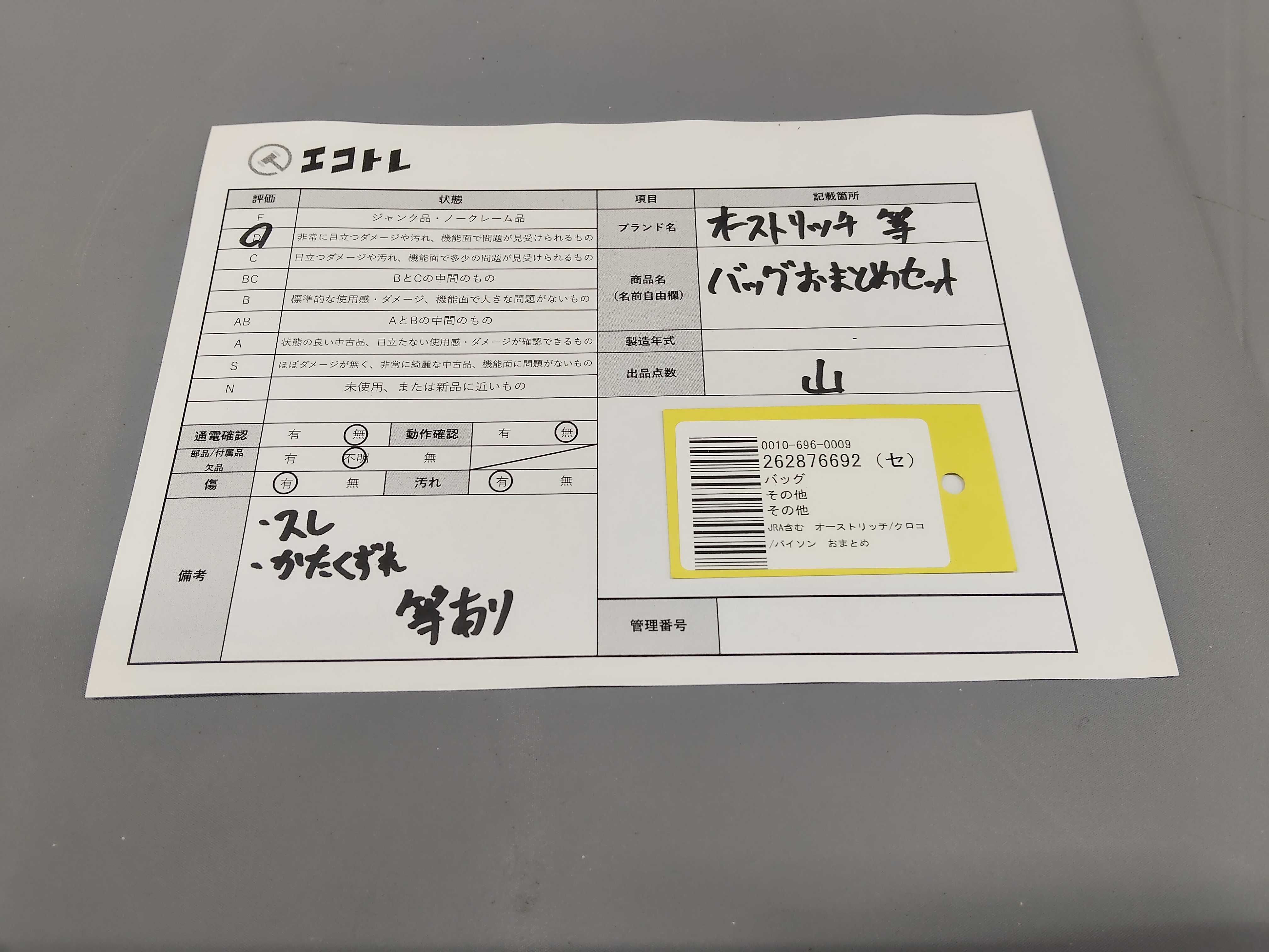 商品内容によって、JITBOXなどでの発送となる可能性がございます事ご理解下さい。年式などの商品情報詳細は写真にてご確認願います。※ご入札の際はご利用規約をよくお読みになってからのご参加お願いします。","タイプライン": "", "カテゴリ": "バッグ", "形状コード": "バッグ", "付属品コード": "", "シリアル・シール・型番": ""