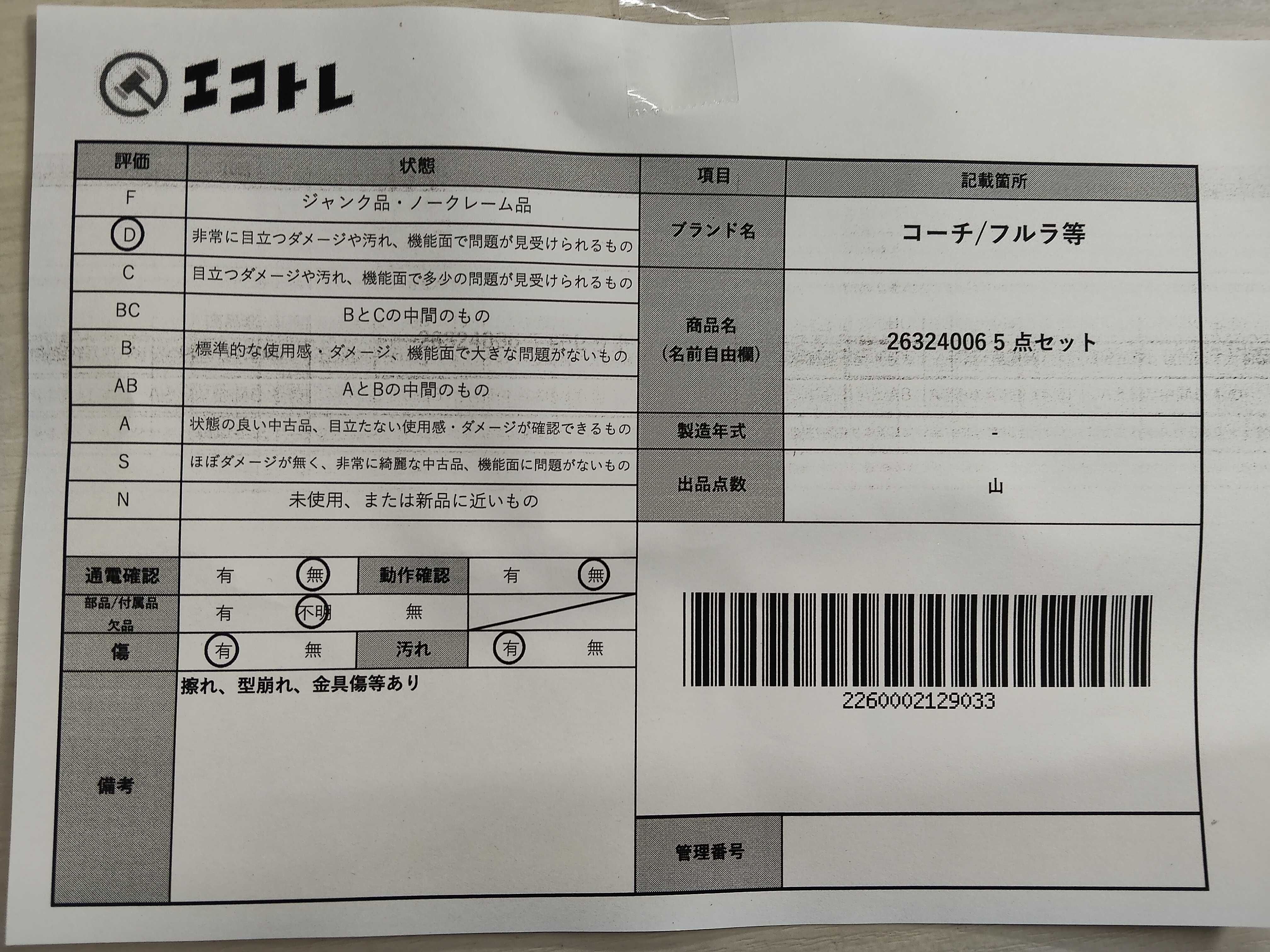 商品内容によって、JITBOXなどでの発送となる可能性がございます事ご理解下さい。年式などの商品情報詳細は写真にてご確認願います。※ご入札の際はご利用規約をよくお読みになってからのご参加お願いします。","タイプライン": "", "カテゴリ": "バッグ", "形状コード": "バッグ", "付属品コード": "", "シリアル・シール・型番": ""