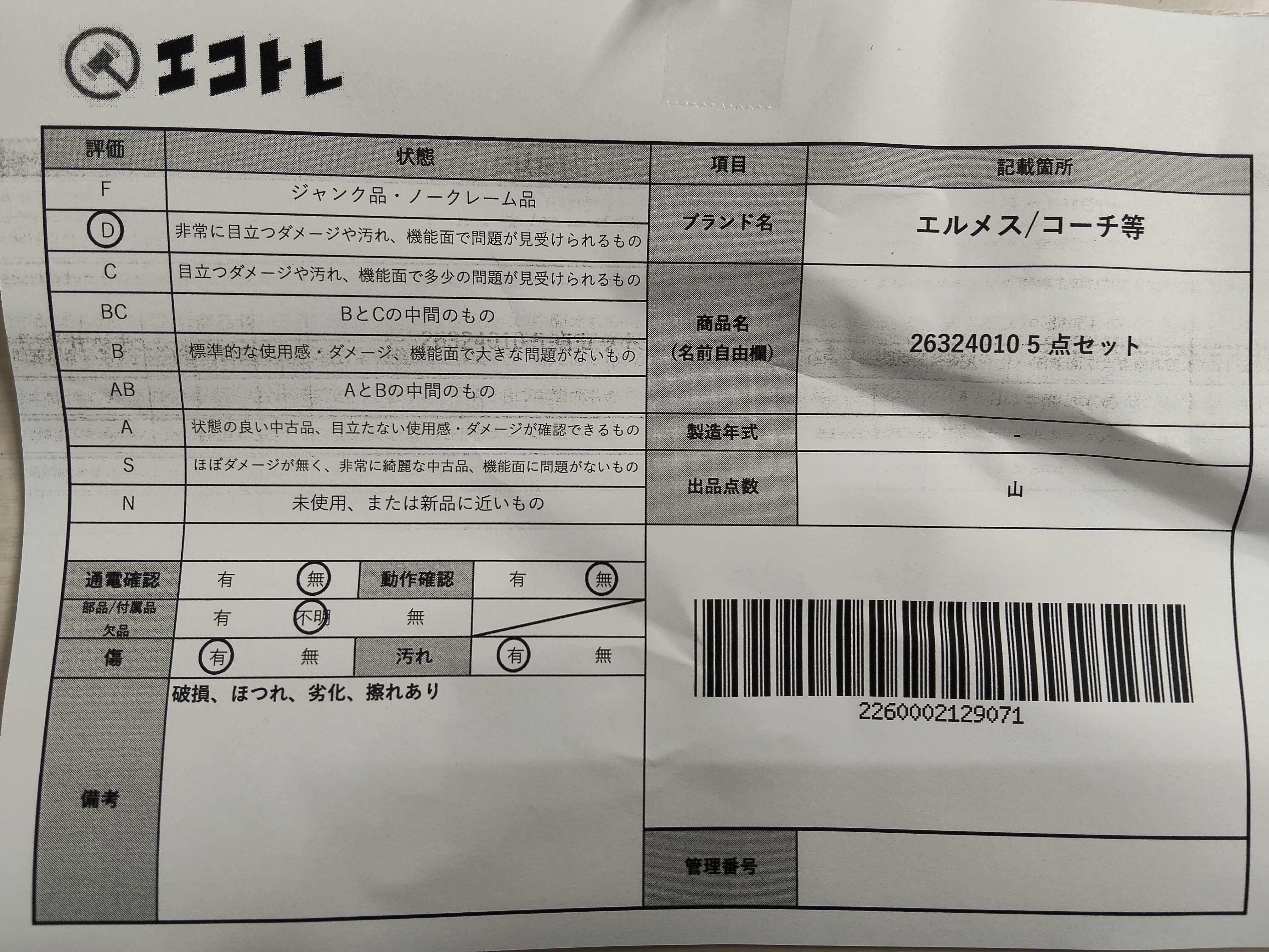 商品内容によって、JITBOXなどでの発送となる可能性がございます事ご理解下さい。年式などの商品情報詳細は写真にてご確認願います。※ご入札の際はご利用規約をよくお読みになってからのご参加お願いします。","タイプライン": "", "カテゴリ": "バッグ", "形状コード": "バッグ", "付属品コード": "", "シリアル・シール・型番": ""