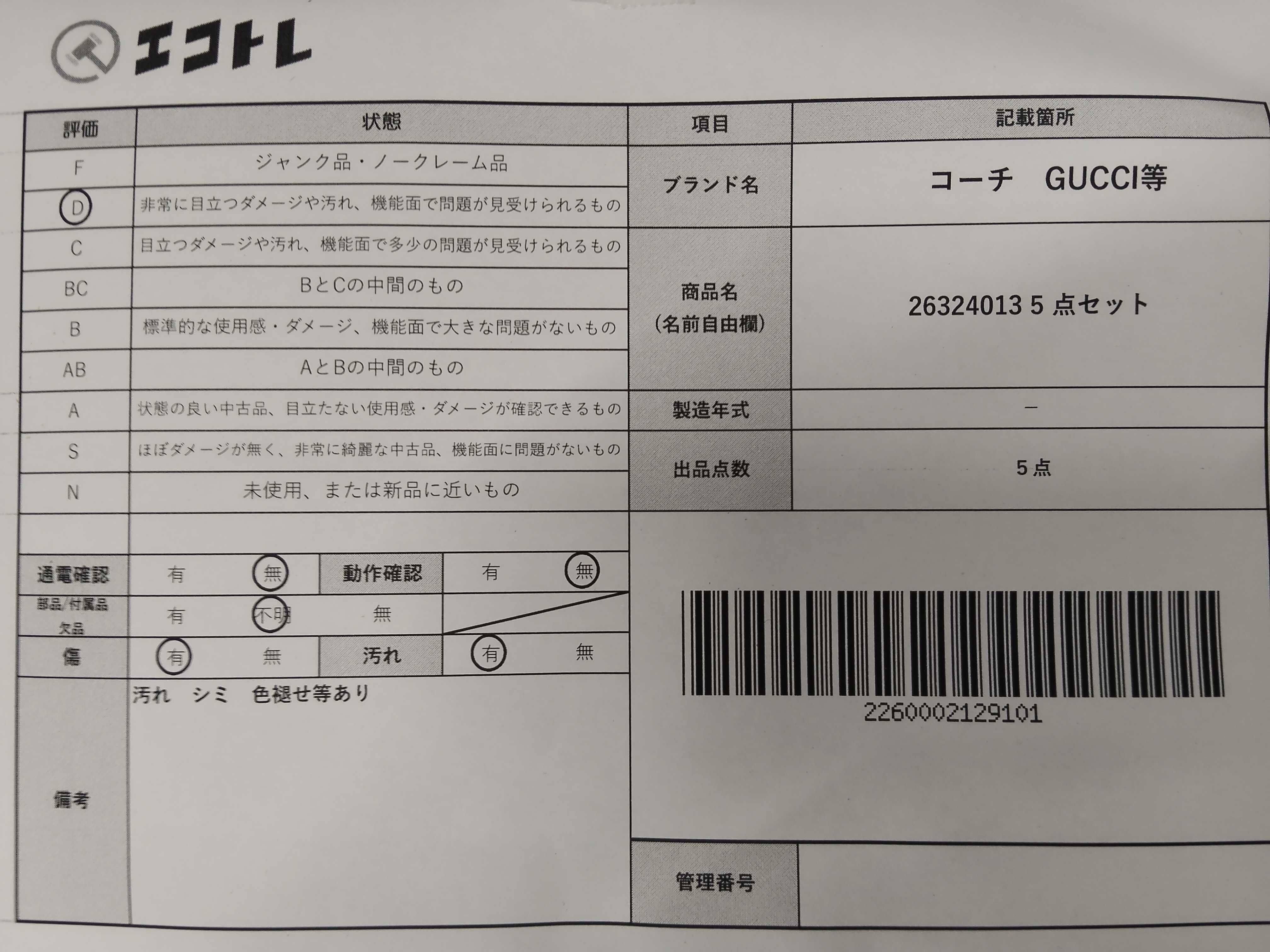 商品内容によって、JITBOXなどでの発送となる可能性がございます事ご理解下さい。年式などの商品情報詳細は写真にてご確認願います。※ご入札の際はご利用規約をよくお読みになってからのご参加お願いします。","タイプライン": "", "カテゴリ": "バッグ", "形状コード": "バッグ", "付属品コード": "", "シリアル・シール・型番": ""