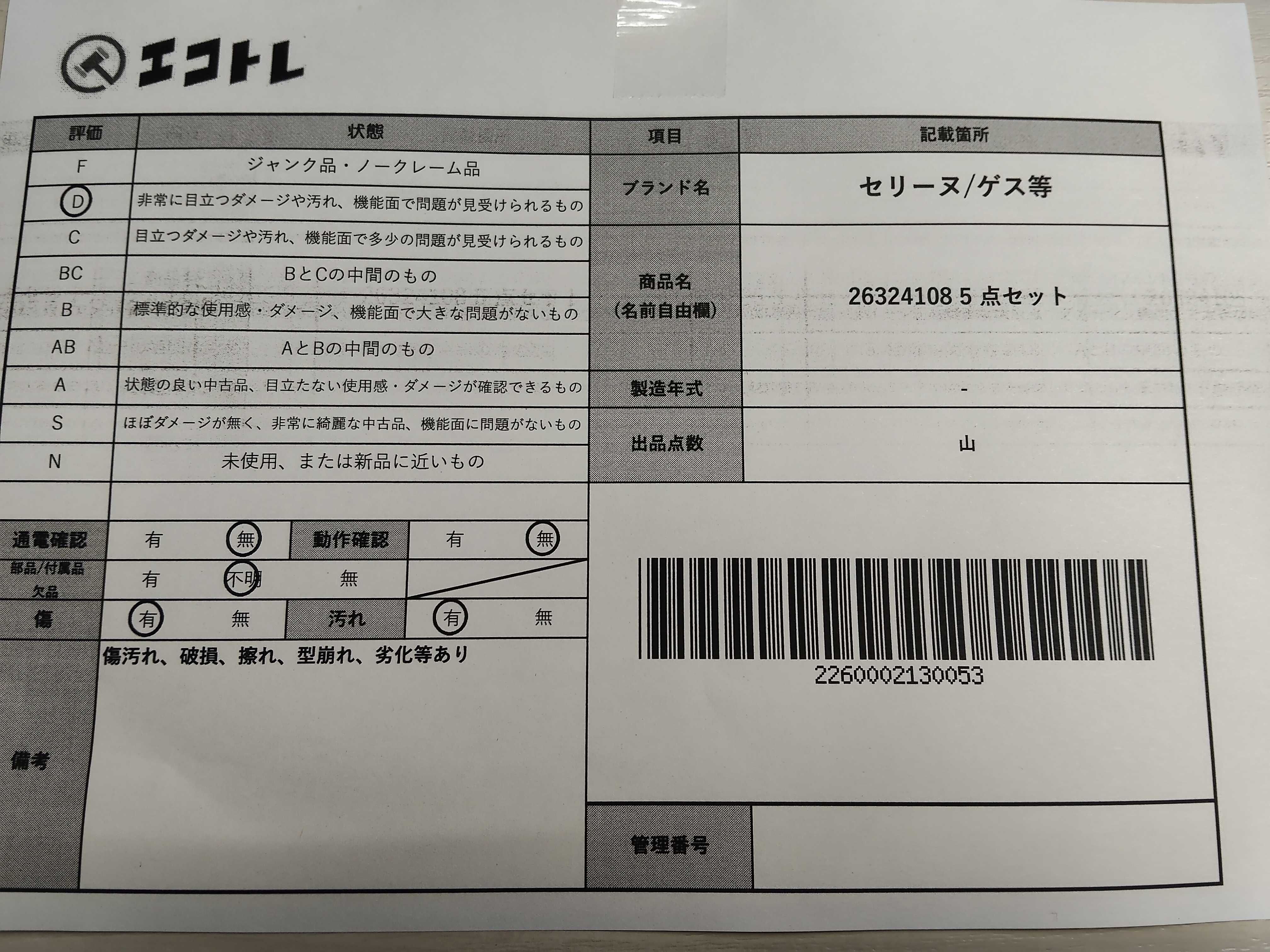商品内容によって、JITBOXなどでの発送となる可能性がございます事ご理解下さい。年式などの商品情報詳細は写真にてご確認願います。※ご入札の際はご利用規約をよくお読みになってからのご参加お願いします。","タイプライン": "", "カテゴリ": "バッグ", "形状コード": "バッグ", "付属品コード": "", "シリアル・シール・型番": ""