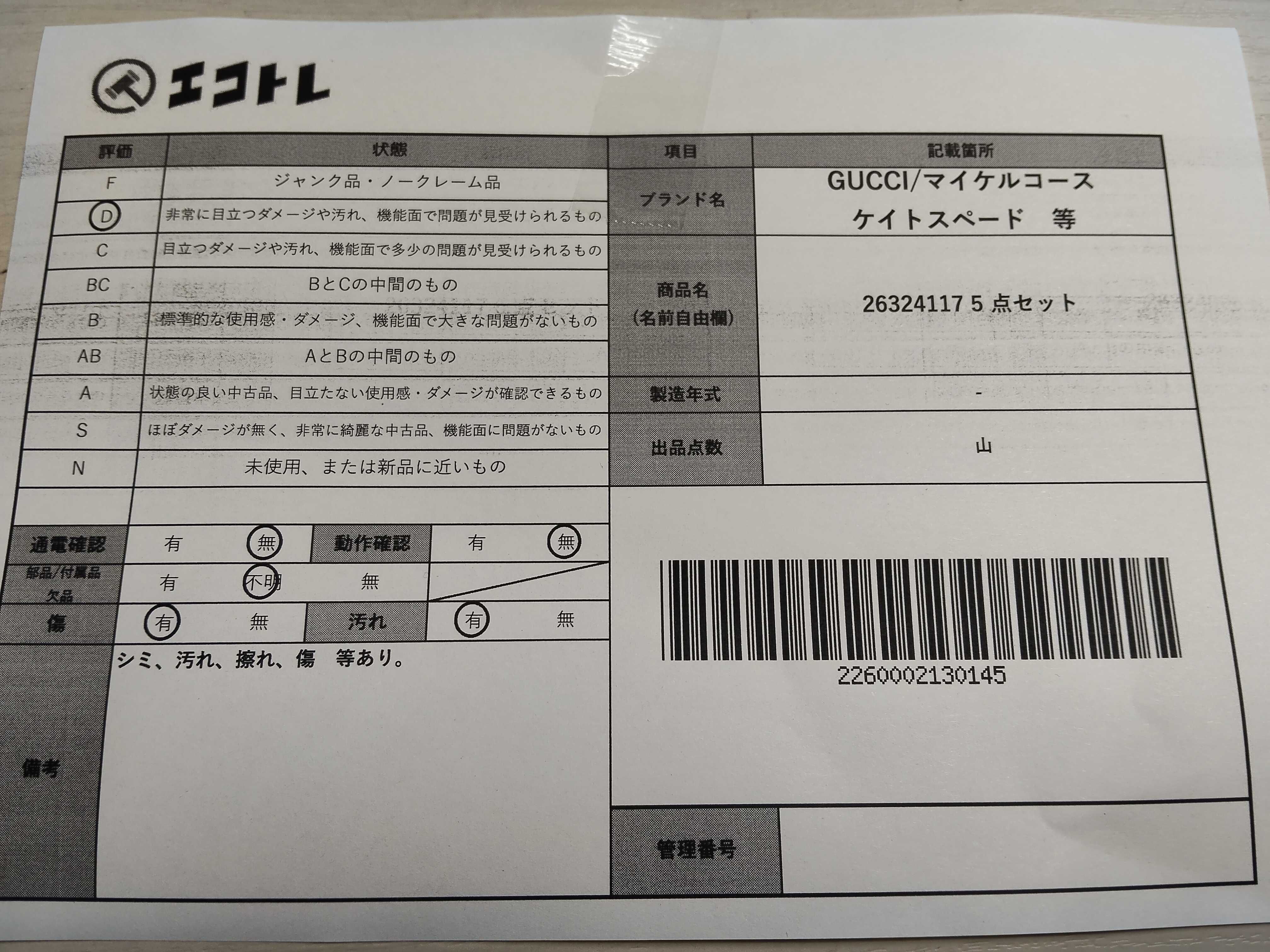 商品内容によって、JITBOXなどでの発送となる可能性がございます事ご理解下さい。年式などの商品情報詳細は写真にてご確認願います。※ご入札の際はご利用規約をよくお読みになってからのご参加お願いします。","タイプライン": "", "カテゴリ": "バッグ", "形状コード": "バッグ", "付属品コード": "", "シリアル・シール・型番": ""