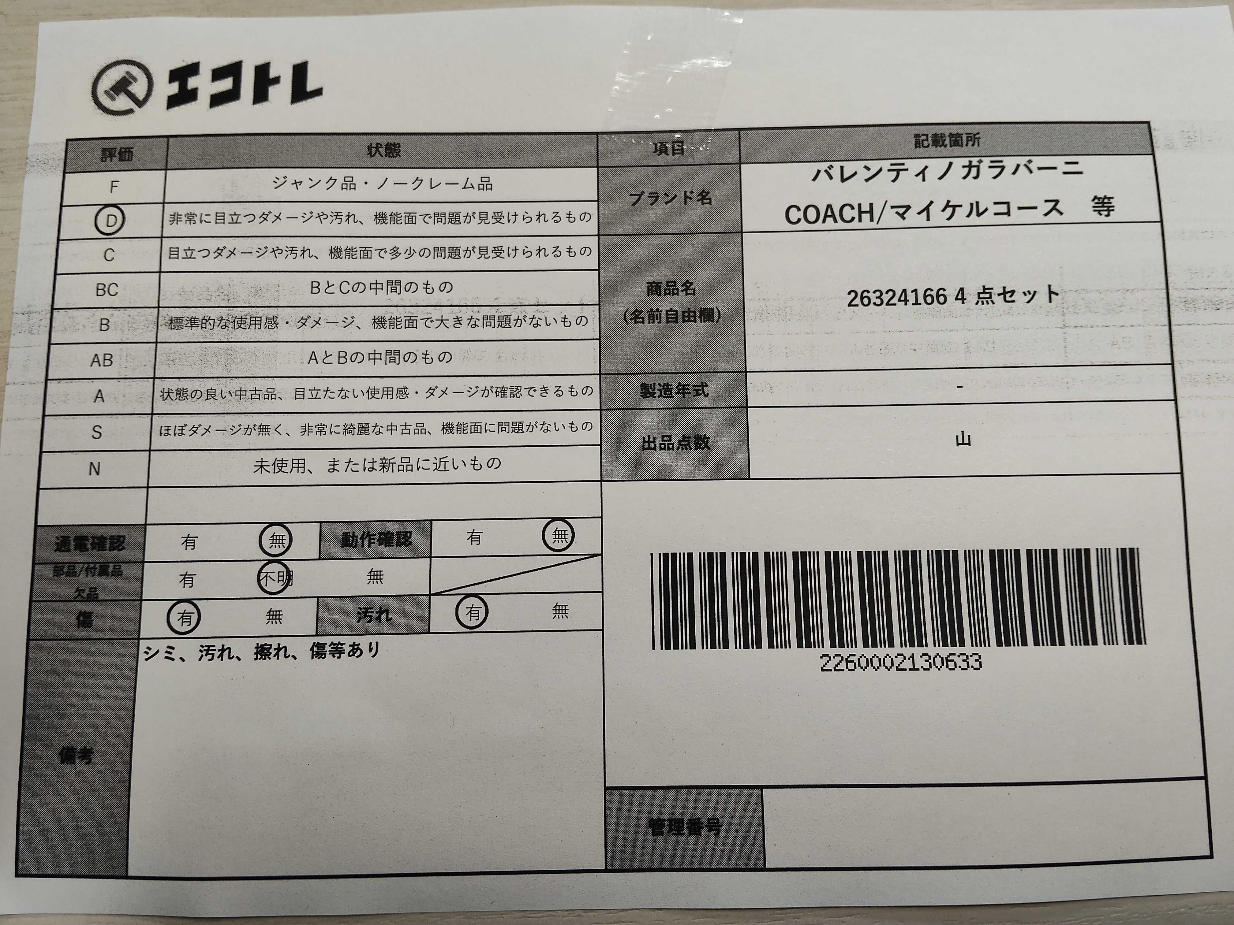 商品内容によって、JITBOXなどでの発送となる可能性がございます事ご理解下さい。年式などの商品情報詳細は写真にてご確認願います。※ご入札の際はご利用規約をよくお読みになってからのご参加お願いします。","タイプライン": "", "カテゴリ": "バッグ", "形状コード": "バッグ", "付属品コード": "", "シリアル・シール・型番": ""