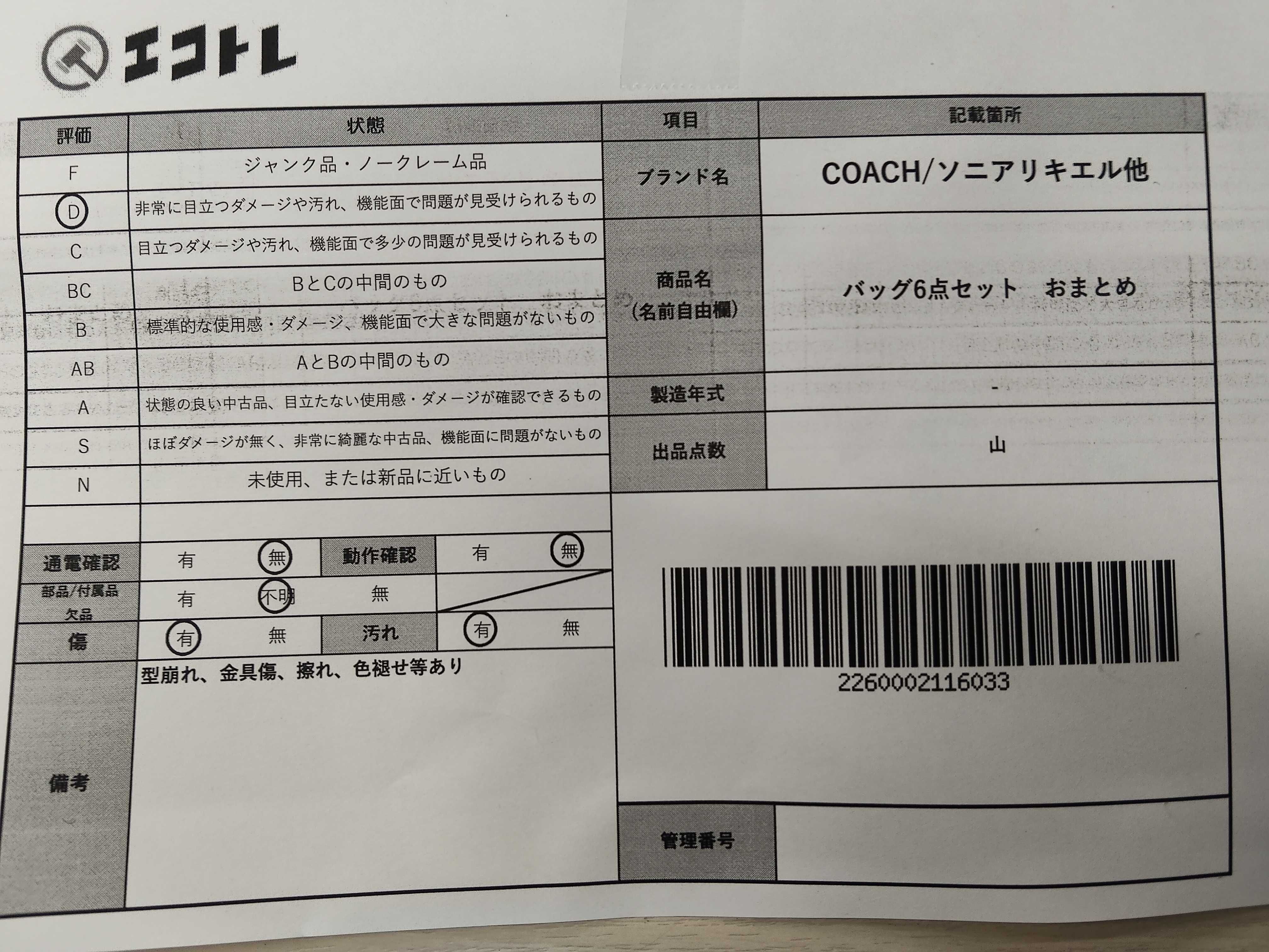 商品内容によって、JITBOXなどでの発送となる可能性がございます事ご理解下さい。年式などの商品情報詳細は写真にてご確認願います。※ご入札の際はご利用規約をよくお読みになってからのご参加お願いします。","タイプライン": "", "カテゴリ": "バッグ", "形状コード": "バッグ", "付属品コード": "", "シリアル・シール・型番": ""
