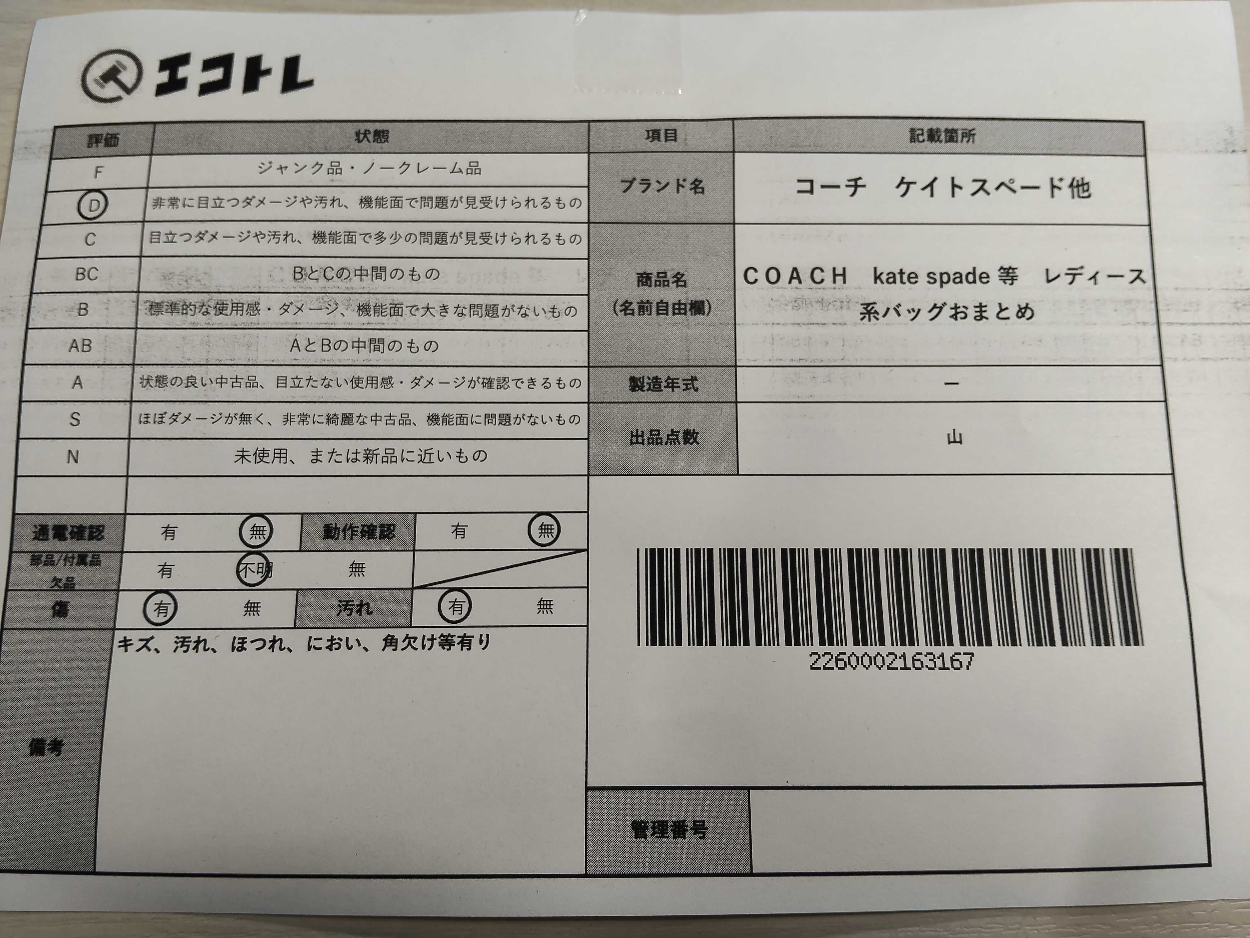 商品内容によって、JITBOXなどでの発送となる可能性がございます事ご理解下さい。年式などの商品情報詳細は写真にてご確認願います。※ご入札の際はご利用規約をよくお読みになってからのご参加お願いします。","タイプライン": "", "カテゴリ": "バッグ", "形状コード": "バッグ", "付属品コード": "", "シリアル・シール・型番": ""