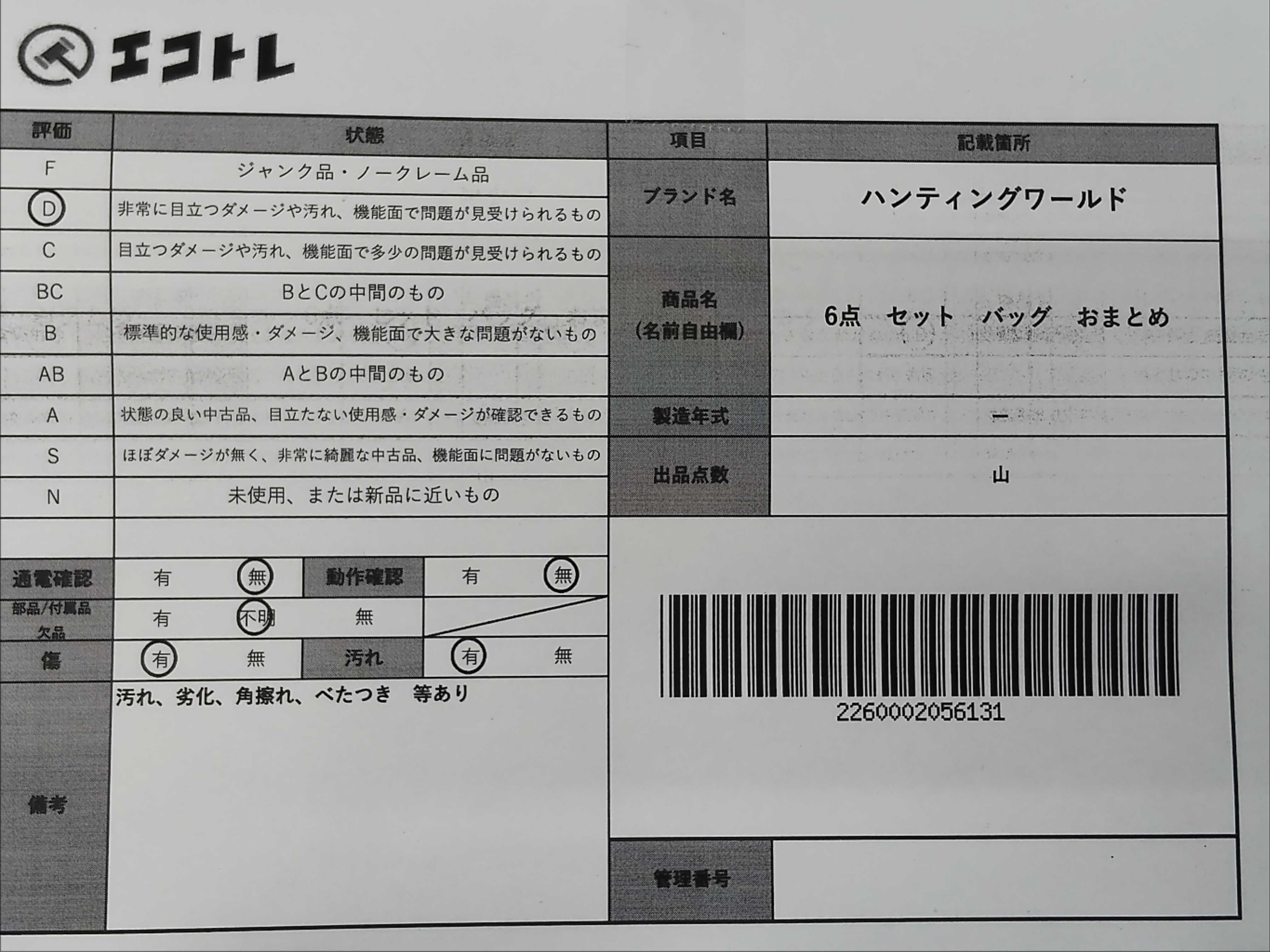 商品内容によって、JITBOXなどでの発送となる可能性がございます事ご理解下さい。年式などの商品情報詳細は写真にてご確認願います。※ご入札の際はご利用規約をよくお読みになってからのご参加お願いします。","タイプライン": "", "カテゴリ": "バッグ", "形状コード": "バッグ", "付属品コード": "", "シリアル・シール・型番": ""