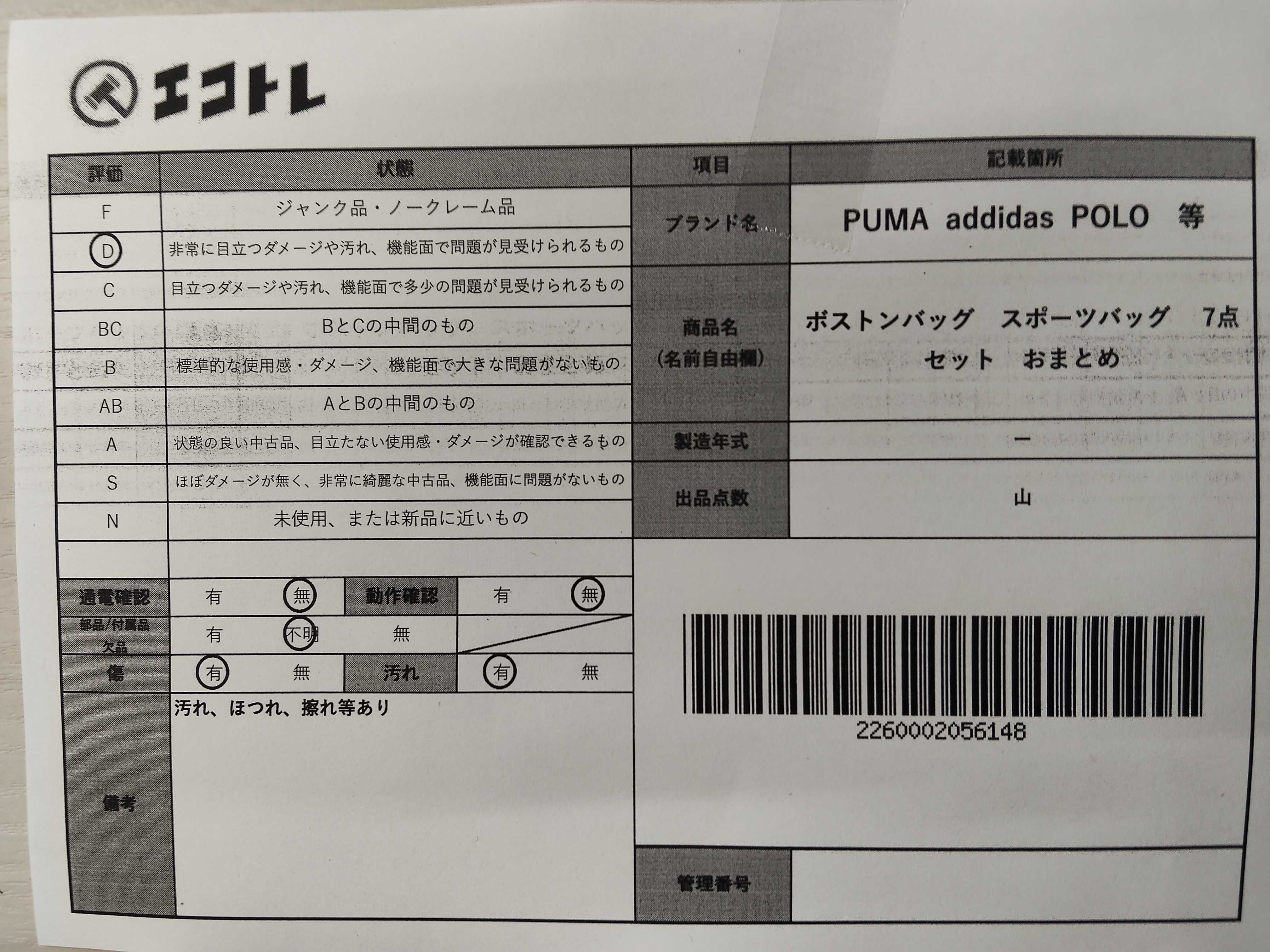 商品内容によって、JITBOXなどでの発送となる可能性がございます事ご理解下さい。年式などの商品情報詳細は写真にてご確認願います。※ご入札の際はご利用規約をよくお読みになってからのご参加お願いします。","タイプライン": "", "カテゴリ": "バッグ", "形状コード": "バッグ", "付属品コード": "", "シリアル・シール・型番": ""