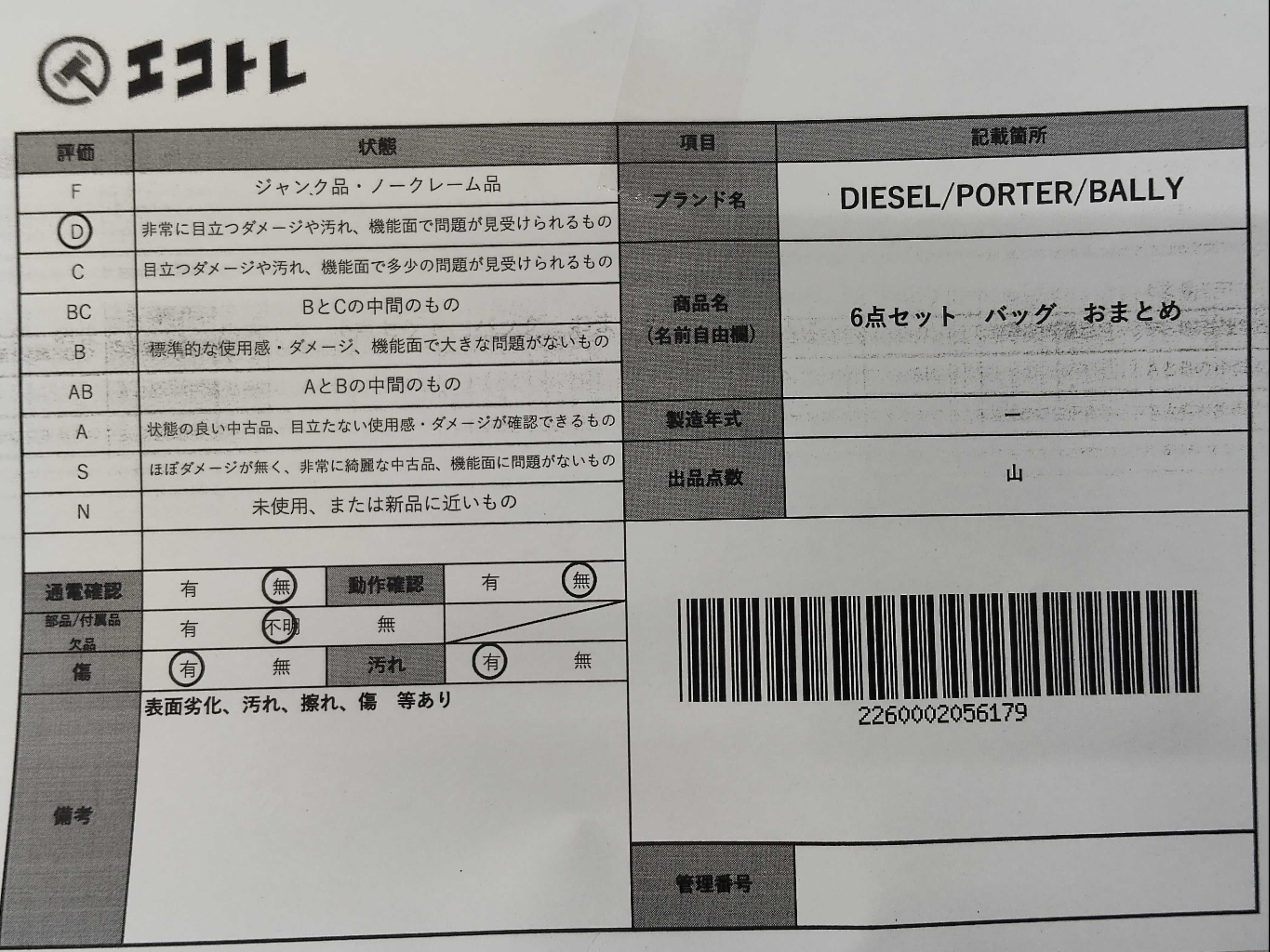 商品内容によって、JITBOXなどでの発送となる可能性がございます事ご理解下さい。年式などの商品情報詳細は写真にてご確認願います。※ご入札の際はご利用規約をよくお読みになってからのご参加お願いします。","タイプライン": "", "カテゴリ": "バッグ", "形状コード": "バッグ", "付属品コード": "", "シリアル・シール・型番": ""
