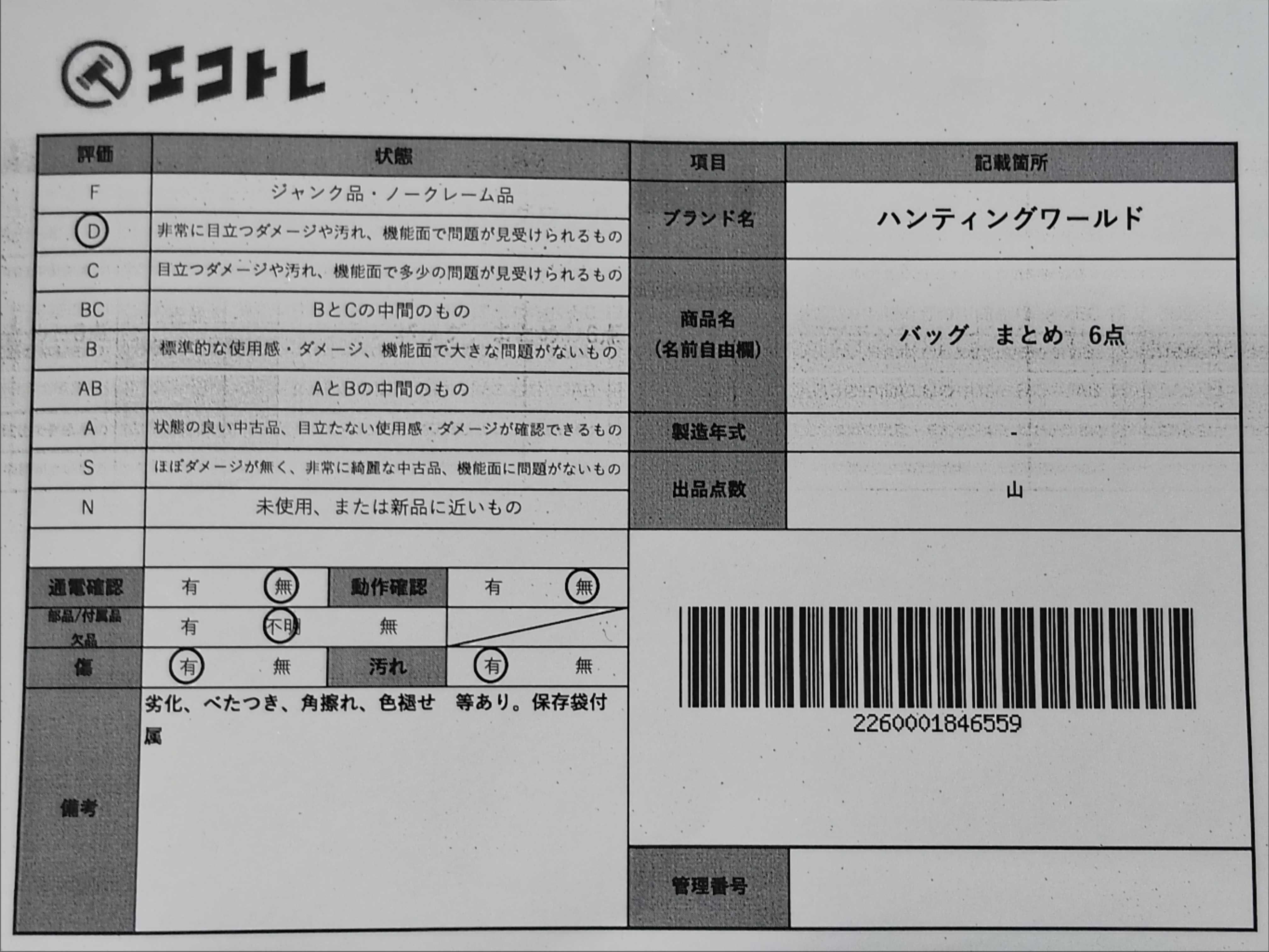 商品内容によって、JITBOXなどでの発送となる可能性がございます事ご理解下さい。年式などの商品情報詳細は写真にてご確認願います。※ご入札の際はご利用規約をよくお読みになってからのご参加お願いします。","タイプライン": "", "カテゴリ": "バッグ", "形状コード": "バッグ", "付属品コード": "", "シリアル・シール・型番": ""