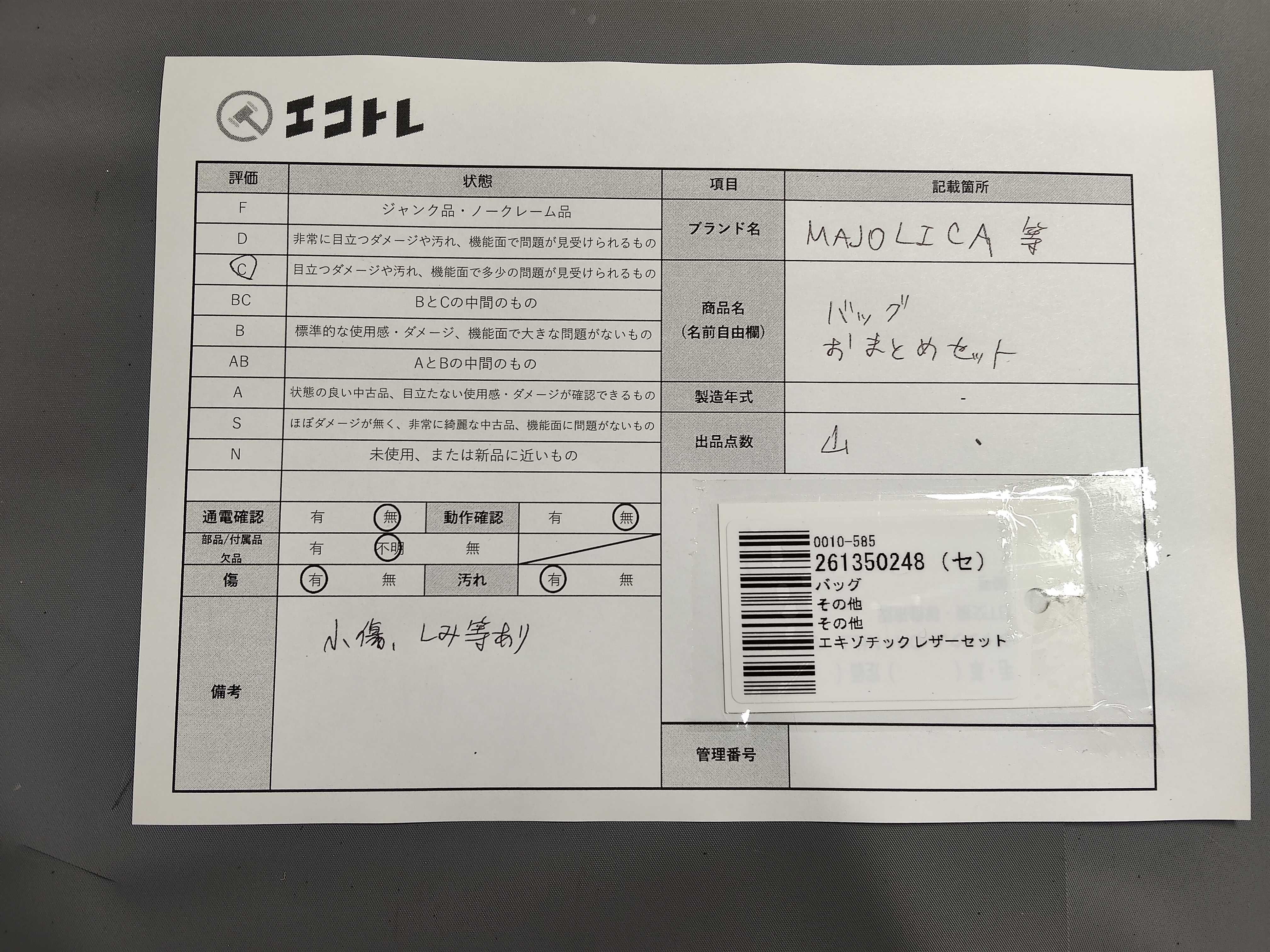 商品内容によって、JITBOXなどでの発送となる可能性がございます事ご理解下さい。年式などの商品情報詳細は写真にてご確認願います。※ご入札の際はご利用規約をよくお読みになってからのご参加お願いします。","タイプライン": "", "カテゴリ": "バッグ", "形状コード": "バッグ", "付属品コード": "", "シリアル・シール・型番": ""