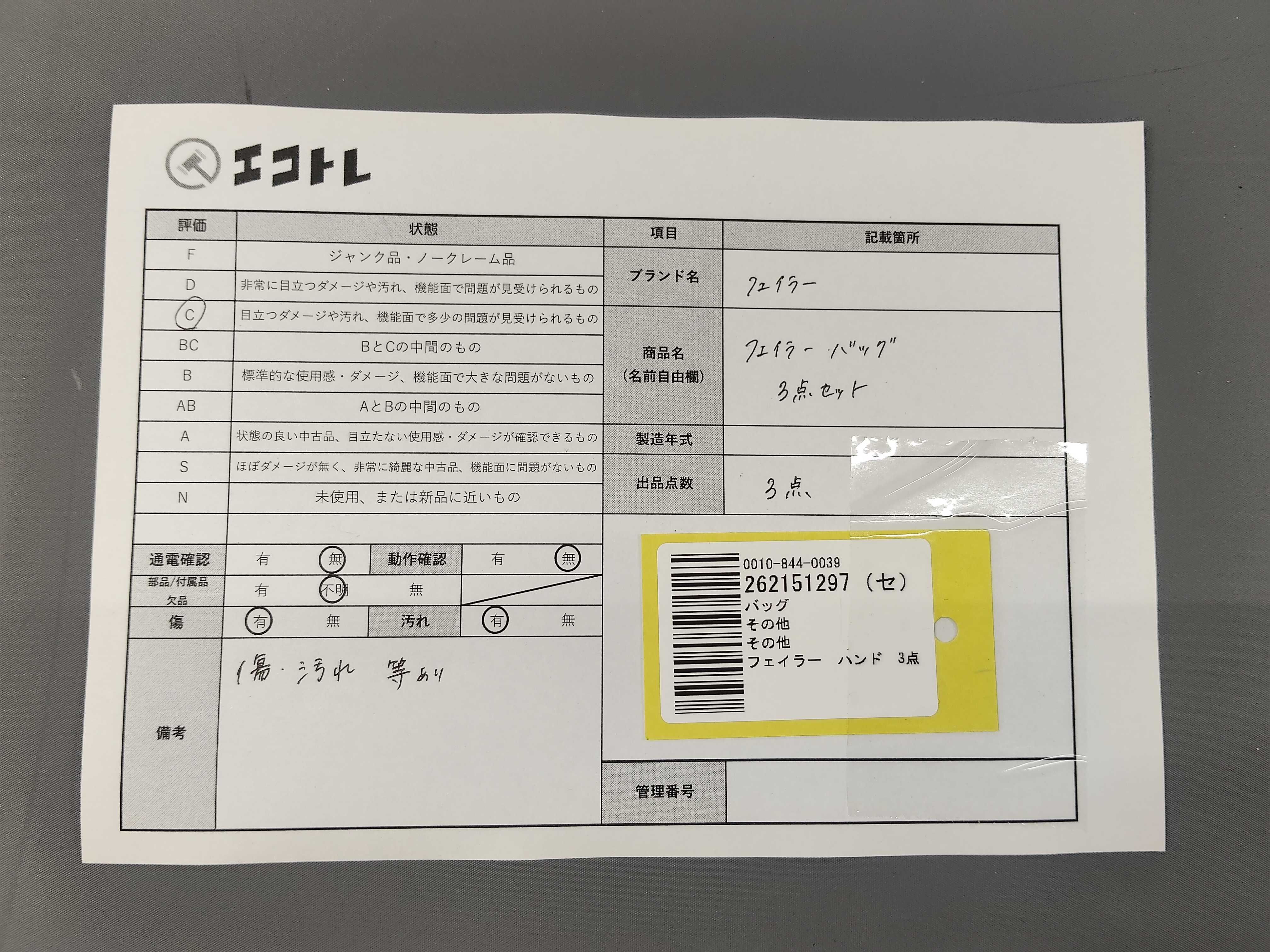 商品内容によって、JITBOXなどでの発送となる可能性がございます事ご理解下さい。年式などの商品情報詳細は写真にてご確認願います。※ご入札の際はご利用規約をよくお読みになってからのご参加お願いします。","タイプライン": "", "カテゴリ": "バッグ", "形状コード": "バッグ", "付属品コード": "", "シリアル・シール・型番": ""