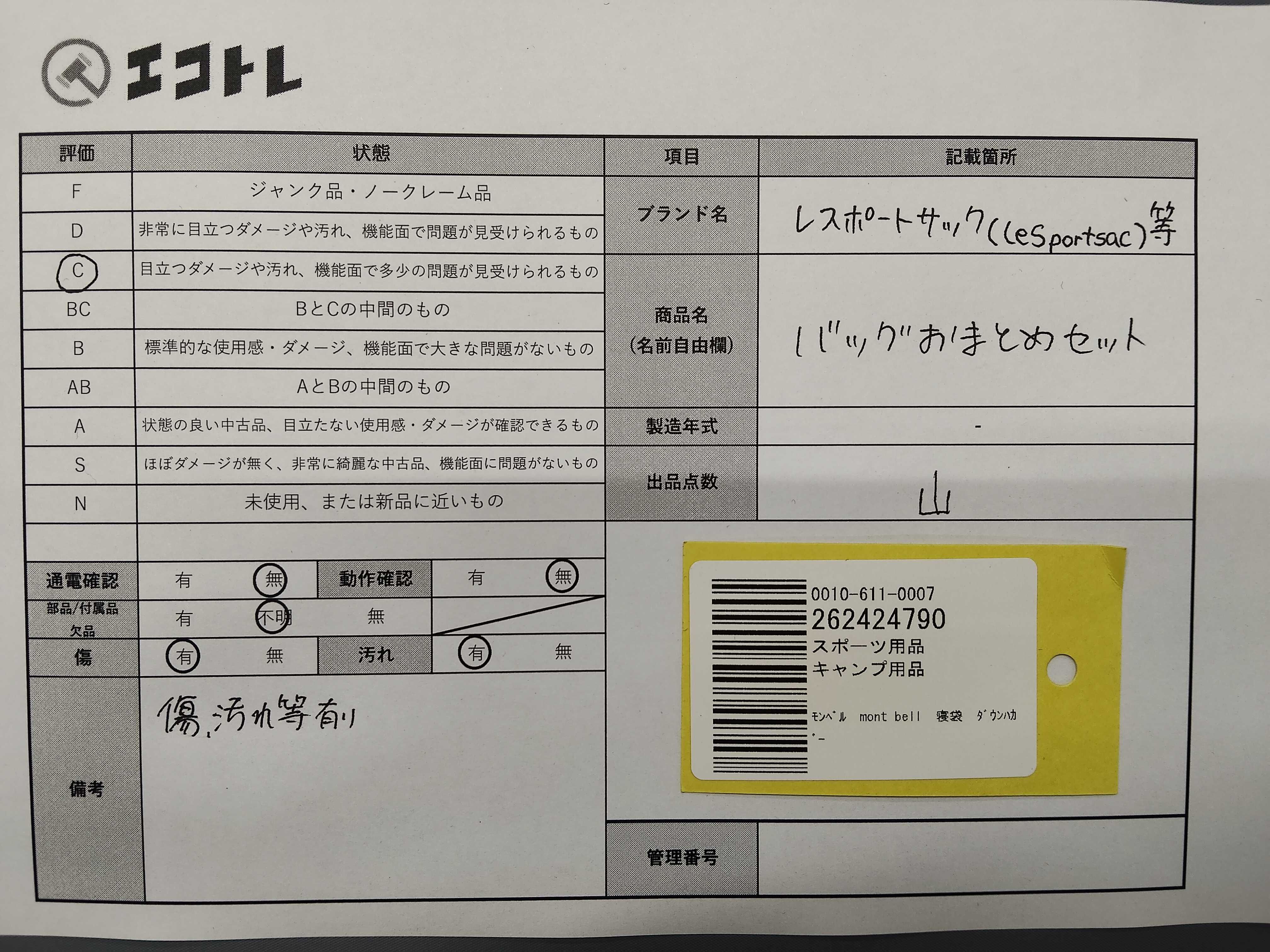 商品内容によって、JITBOXなどでの発送となる可能性がございます事ご理解下さい。年式などの商品情報詳細は写真にてご確認願います。※ご入札の際はご利用規約をよくお読みになってからのご参加お願いします。","タイプライン": "", "カテゴリ": "バッグ", "形状コード": "バッグ", "付属品コード": "", "シリアル・シール・型番": ""