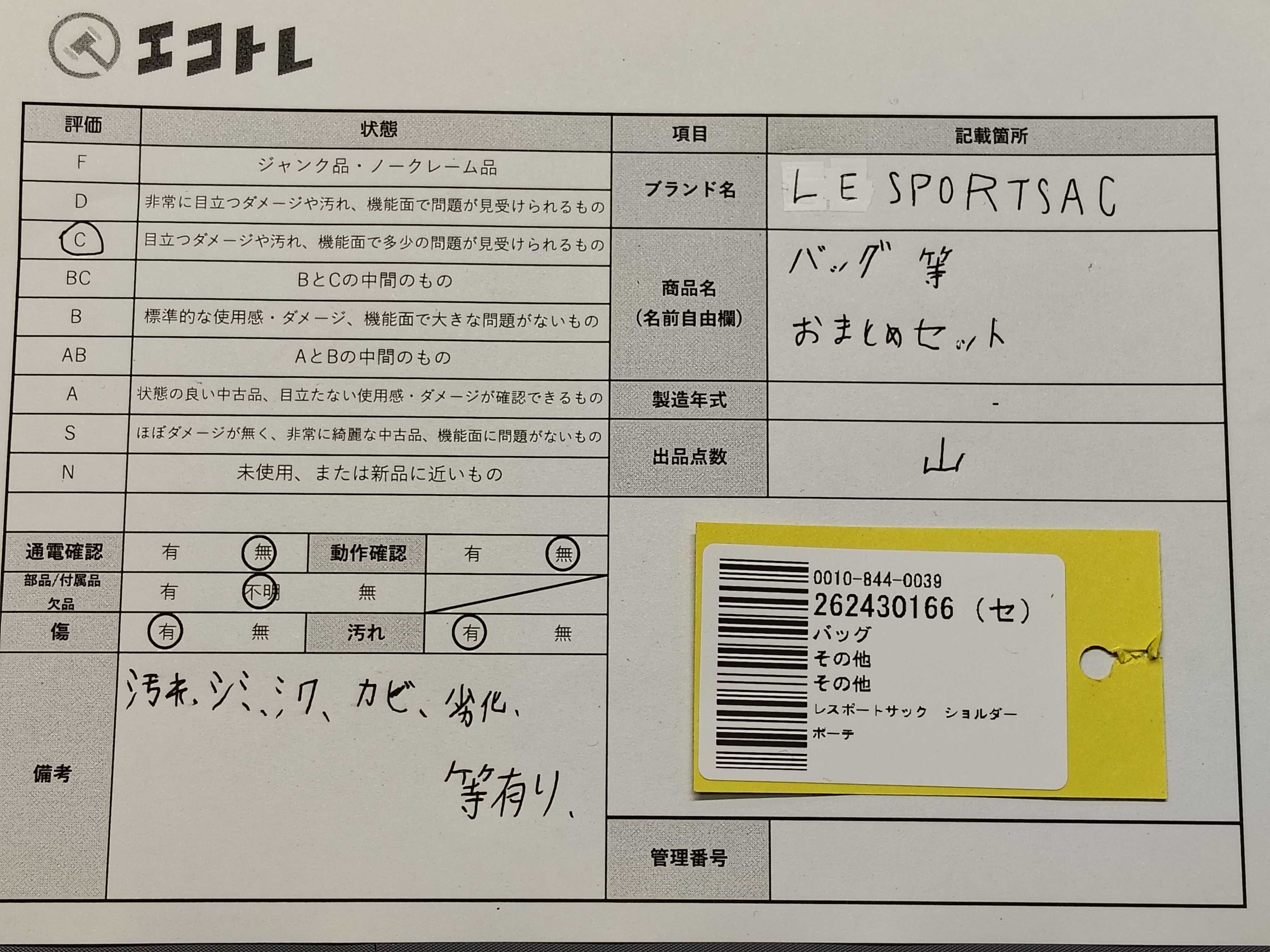商品内容によって、JITBOXなどでの発送となる可能性がございます事ご理解下さい。年式などの商品情報詳細は写真にてご確認願います。※ご入札の際はご利用規約をよくお読みになってからのご参加お願いします。","タイプライン": "", "カテゴリ": "バッグ", "形状コード": "バッグ", "付属品コード": "", "シリアル・シール・型番": ""