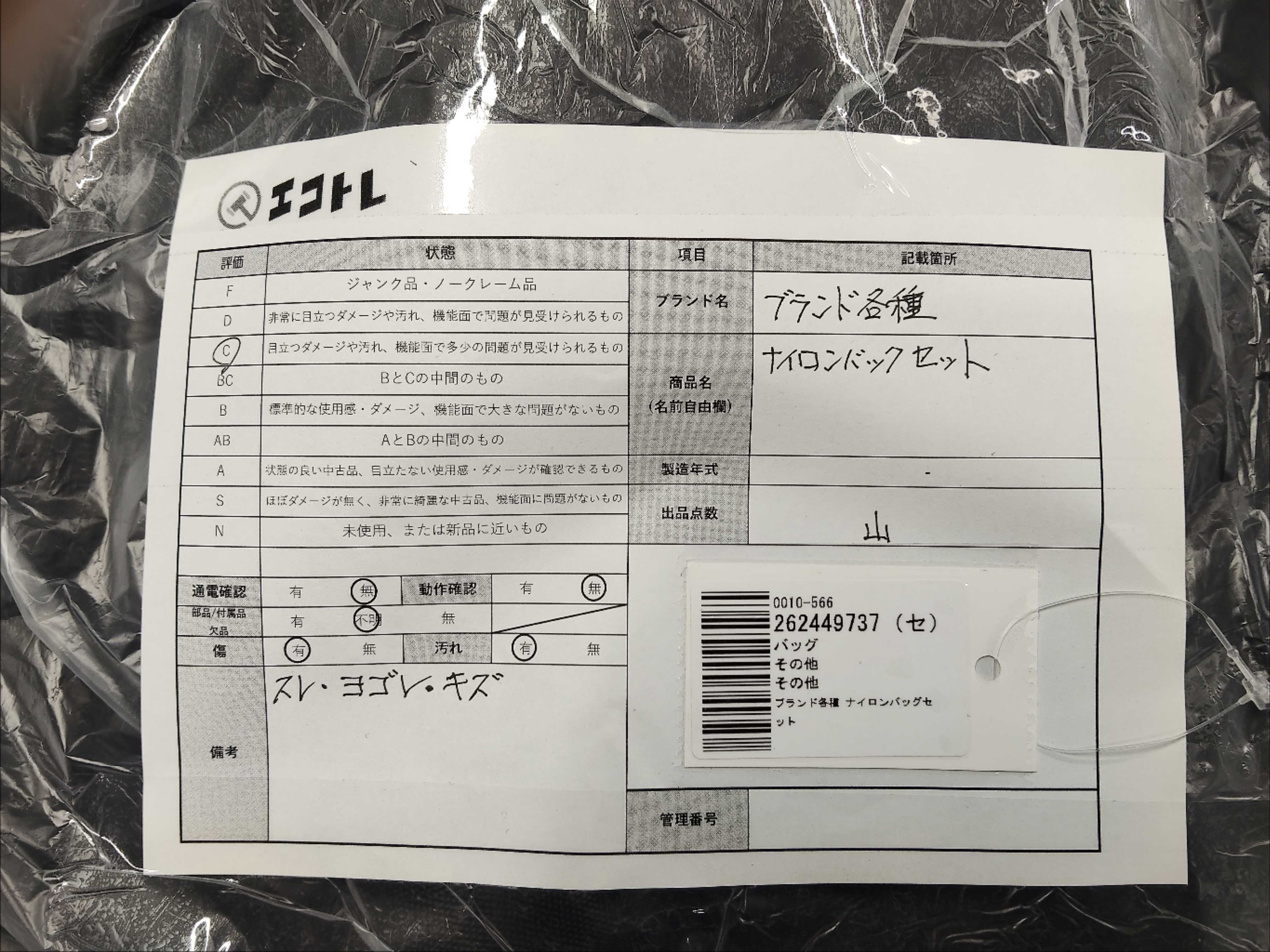 商品内容によって、JITBOXなどでの発送となる可能性がございます事ご理解下さい。年式などの商品情報詳細は写真にてご確認願います。※ご入札の際はご利用規約をよくお読みになってからのご参加お願いします。","タイプライン": "", "カテゴリ": "バッグ", "形状コード": "バッグ", "付属品コード": "", "シリアル・シール・型番": ""