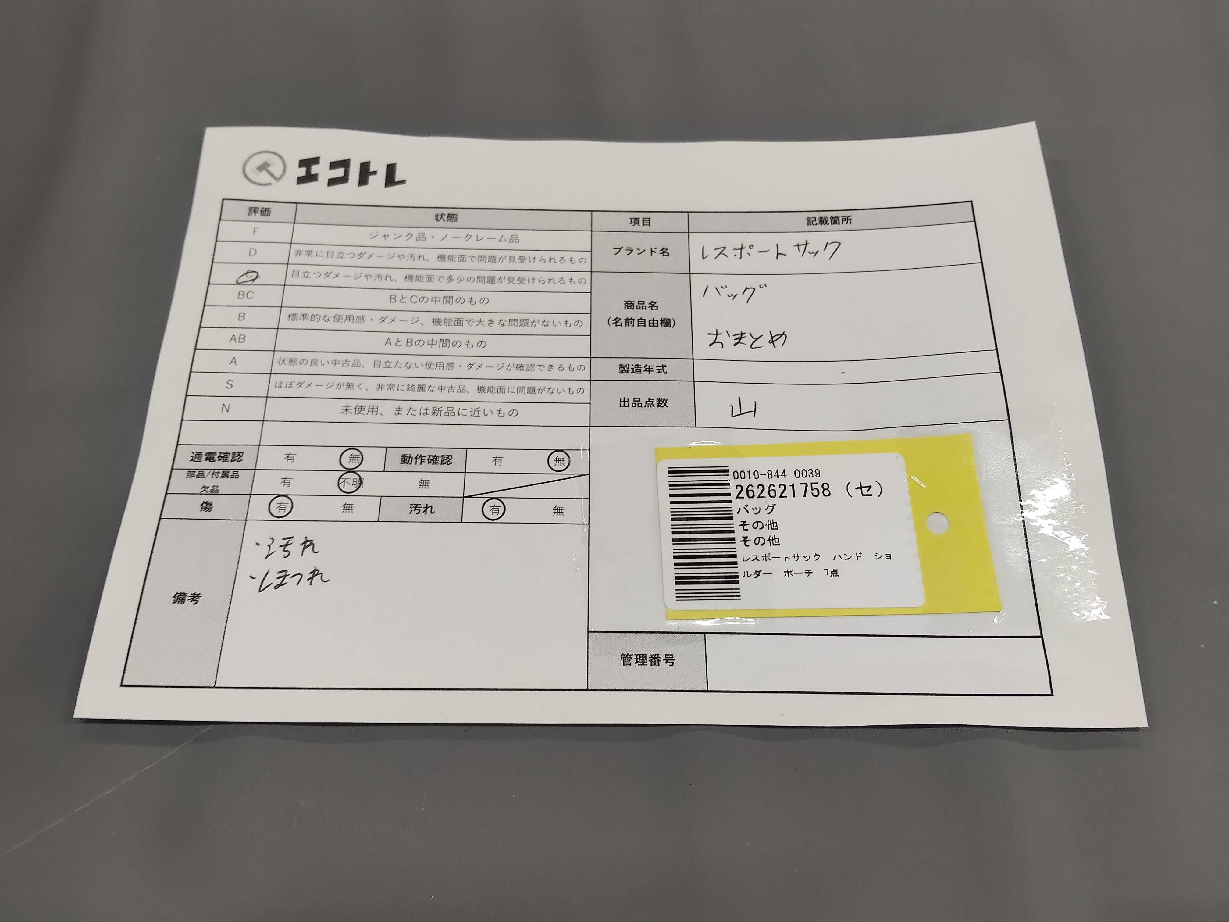 商品内容によって、JITBOXなどでの発送となる可能性がございます事ご理解下さい。年式などの商品情報詳細は写真にてご確認願います。※ご入札の際はご利用規約をよくお読みになってからのご参加お願いします。","タイプライン": "", "カテゴリ": "バッグ", "形状コード": "バッグ", "付属品コード": "", "シリアル・シール・型番": ""