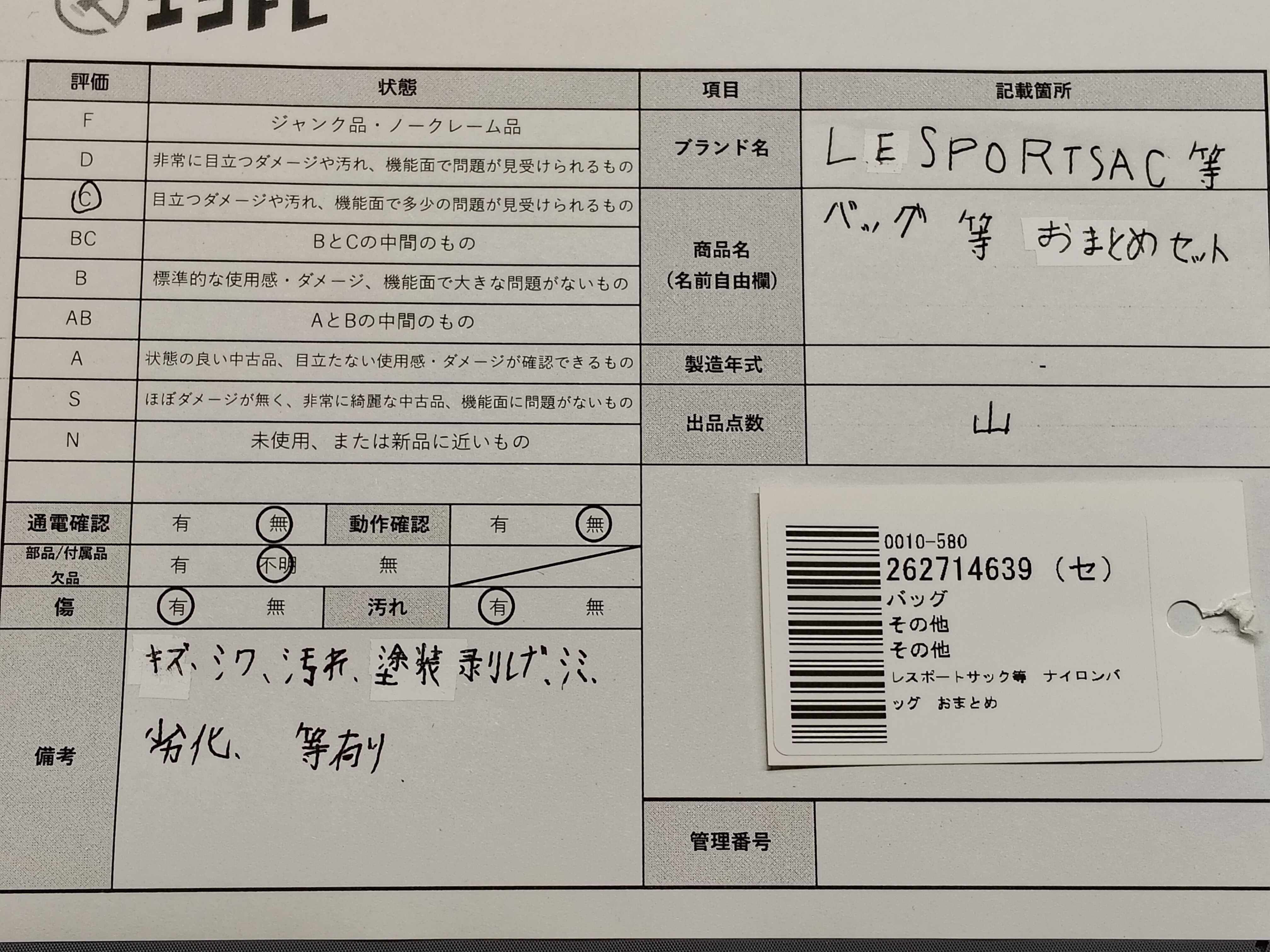 商品内容によって、JITBOXなどでの発送となる可能性がございます事ご理解下さい。年式などの商品情報詳細は写真にてご確認願います。※ご入札の際はご利用規約をよくお読みになってからのご参加お願いします。","タイプライン": "", "カテゴリ": "バッグ", "形状コード": "バッグ", "付属品コード": "", "シリアル・シール・型番": ""