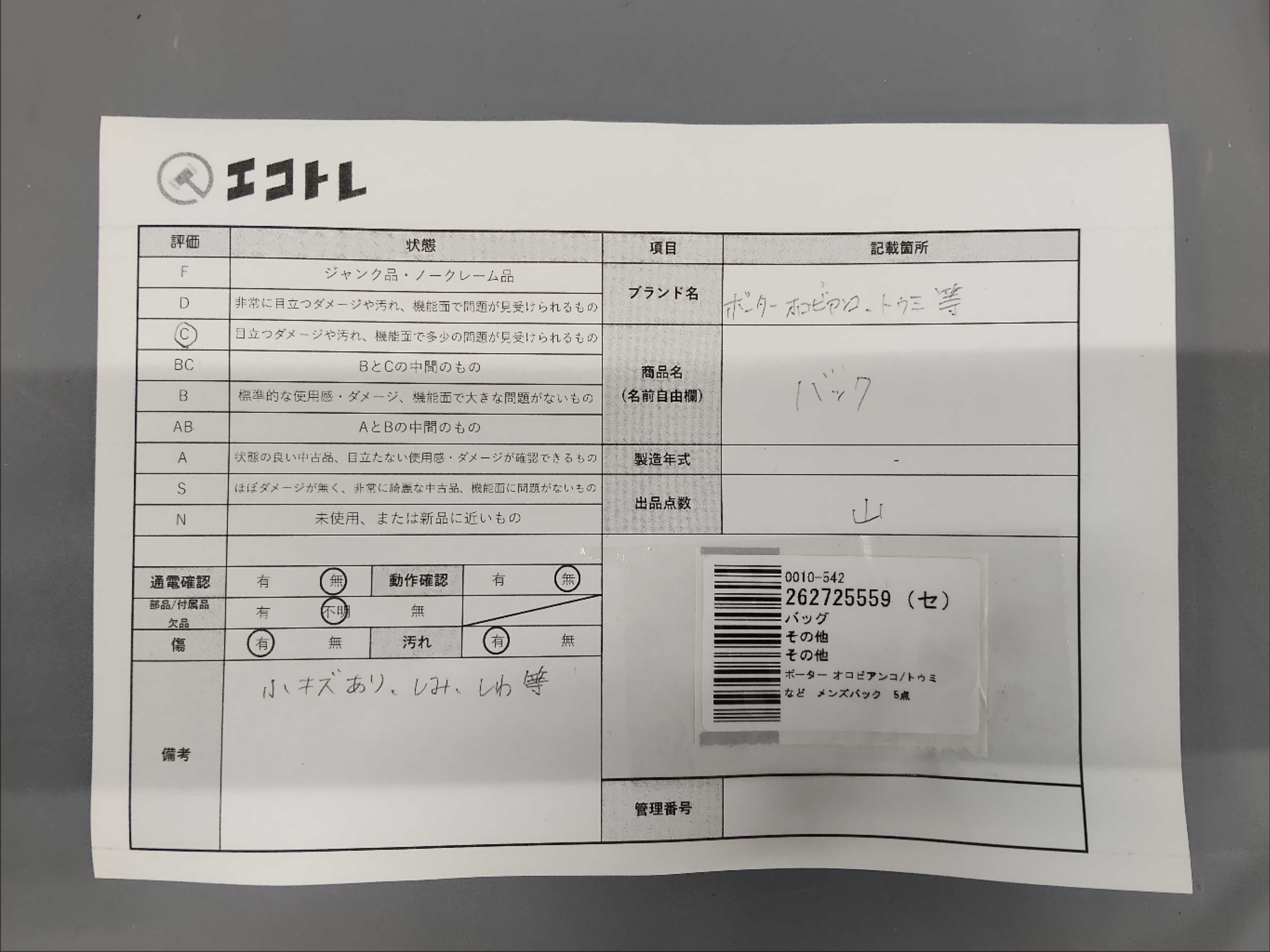 商品内容によって、JITBOXなどでの発送となる可能性がございます事ご理解下さい。年式などの商品情報詳細は写真にてご確認願います。※ご入札の際はご利用規約をよくお読みになってからのご参加お願いします。","タイプライン": "", "カテゴリ": "バッグ", "形状コード": "バッグ", "付属品コード": "", "シリアル・シール・型番": ""