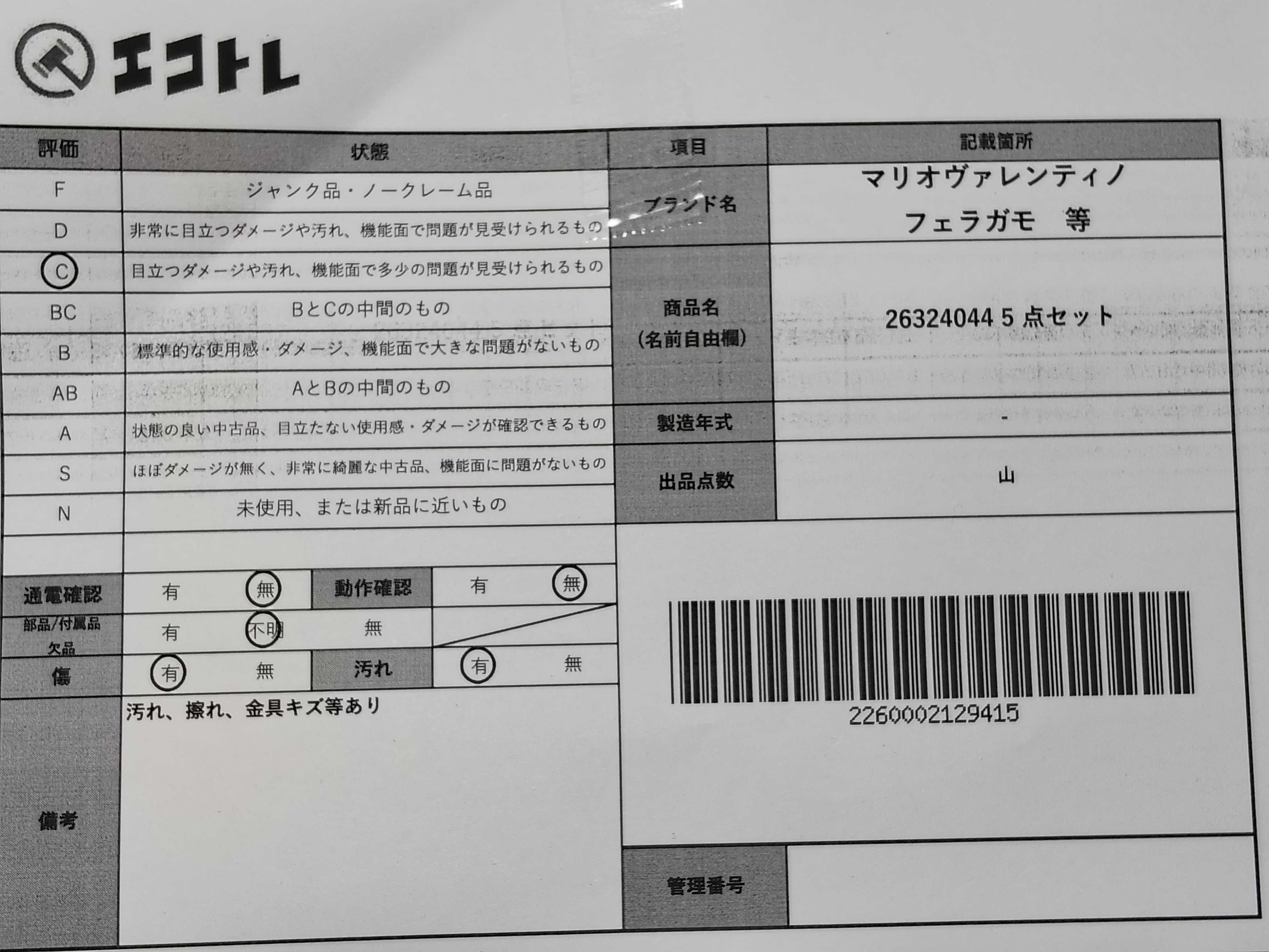 商品内容によって、JITBOXなどでの発送となる可能性がございます事ご理解下さい。年式などの商品情報詳細は写真にてご確認願います。※ご入札の際はご利用規約をよくお読みになってからのご参加お願いします。","タイプライン": "", "カテゴリ": "バッグ", "形状コード": "バッグ", "付属品コード": "", "シリアル・シール・型番": ""