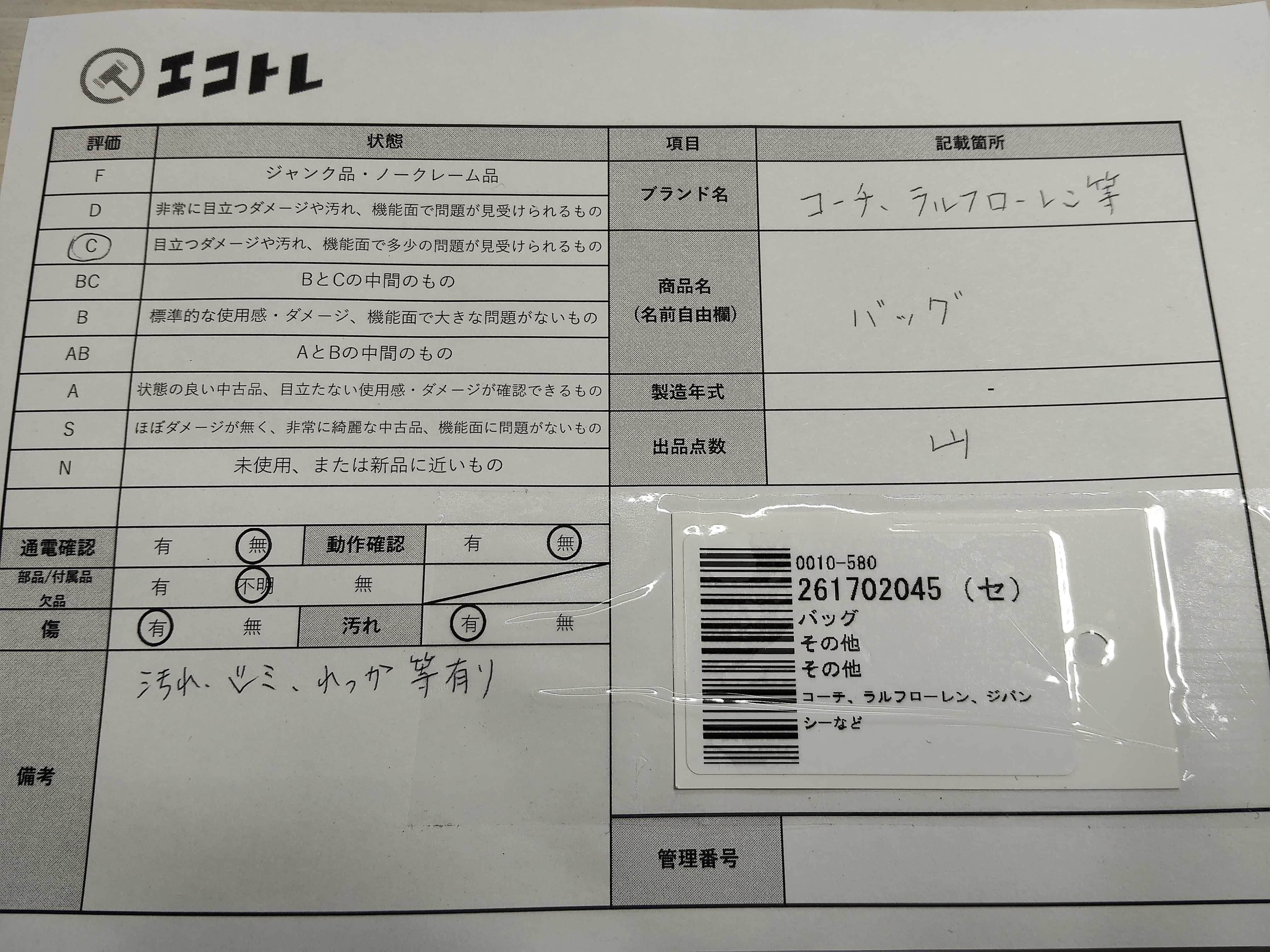 商品内容によって、JITBOXなどでの発送となる可能性がございます事ご理解下さい。年式などの商品情報詳細は写真にてご確認願います。※ご入札の際はご利用規約をよくお読みになってからのご参加お願いします。","タイプライン": "", "カテゴリ": "バッグ", "形状コード": "ハンドバッグ", "付属品コード": "", "シリアル・シール・型番": ""