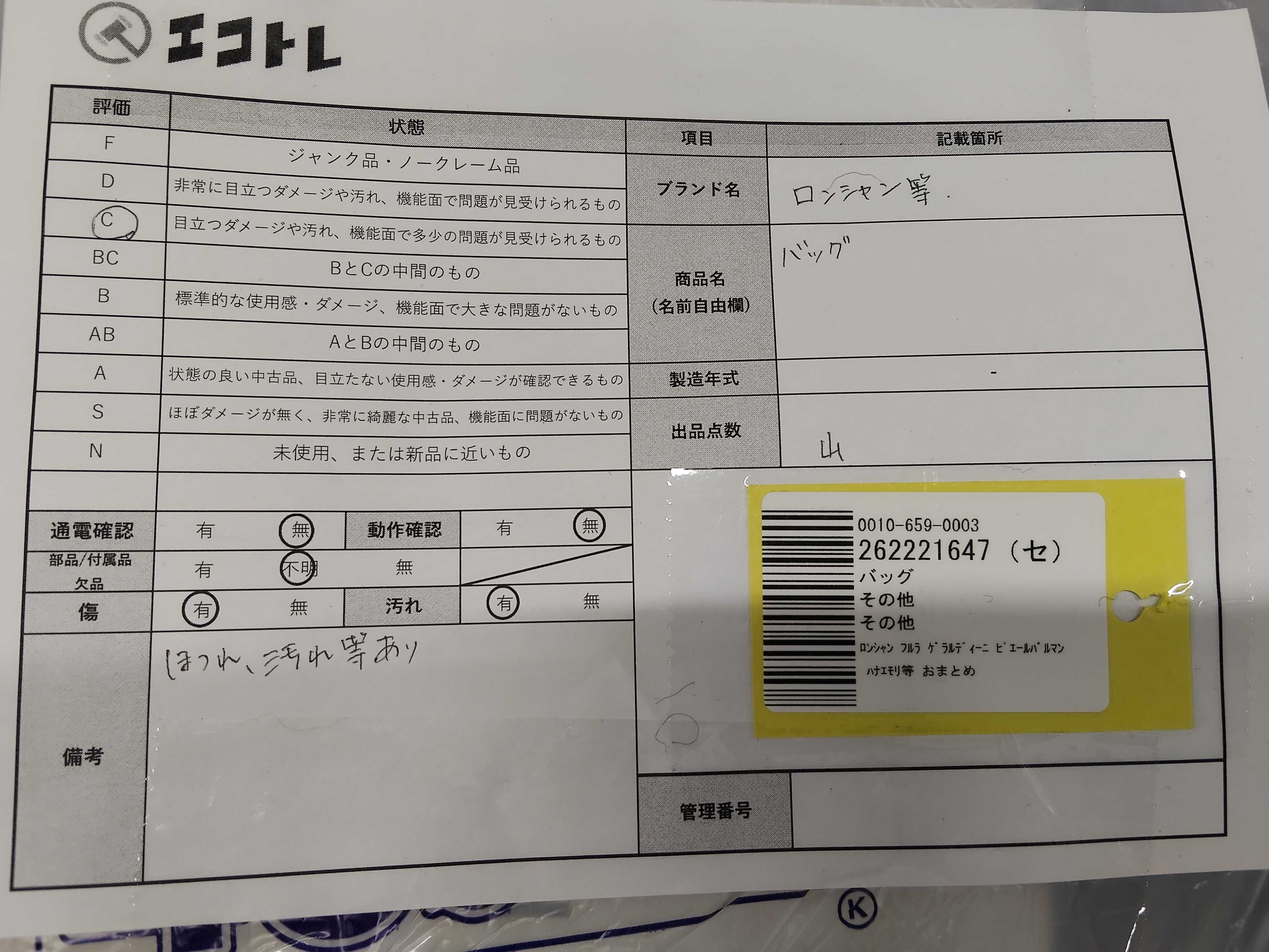 商品内容によって、JITBOXなどでの発送となる可能性がございます事ご理解下さい。年式などの商品情報詳細は写真にてご確認願います。※ご入札の際はご利用規約をよくお読みになってからのご参加お願いします。","タイプライン": "", "カテゴリ": "バッグ", "形状コード": "ハンドバッグ", "付属品コード": "", "シリアル・シール・型番": ""