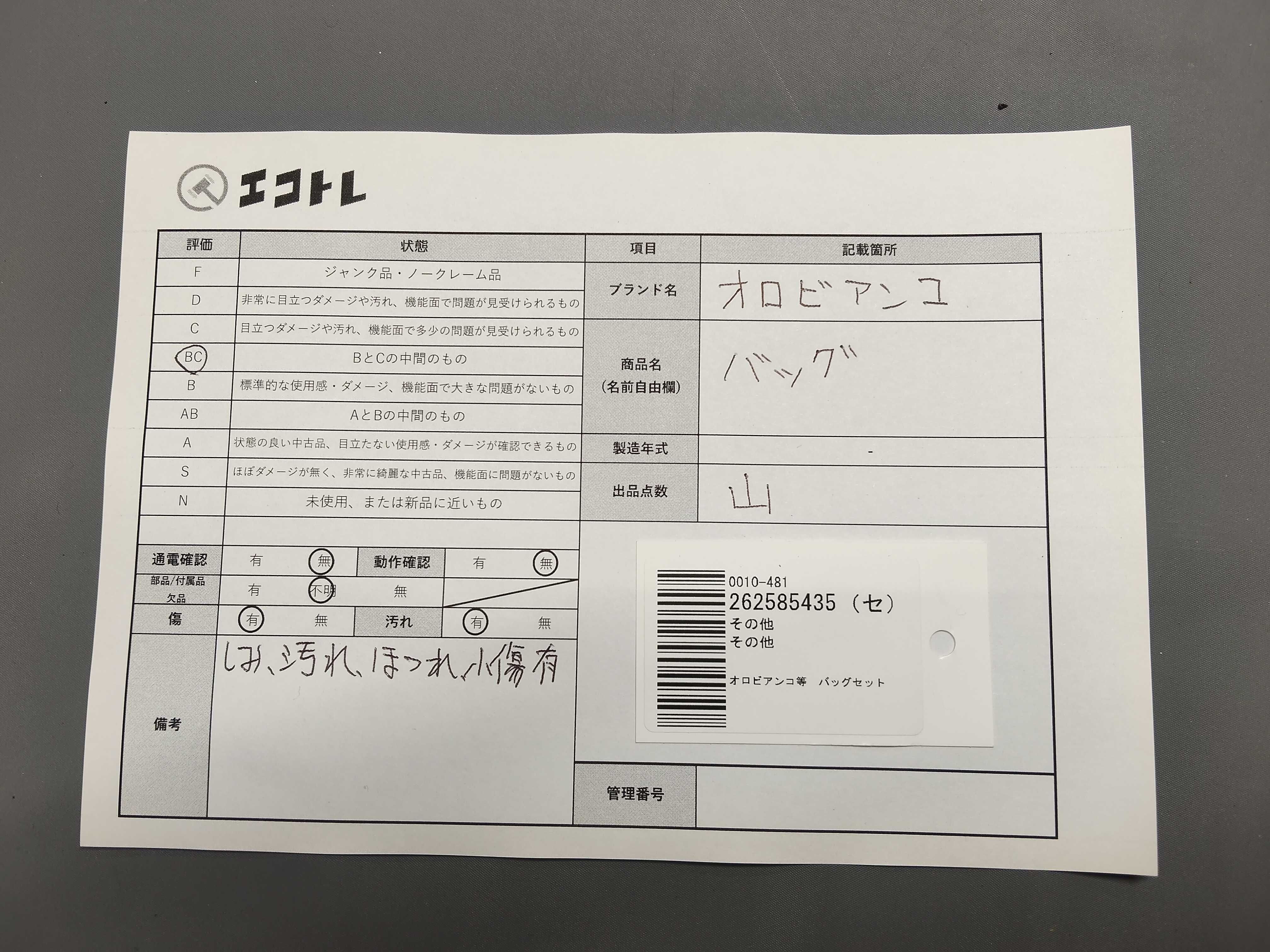 商品内容によって、JITBOXなどでの発送となる可能性がございます事ご理解下さい。年式などの商品情報詳細は写真にてご確認願います。※ご入札の際はご利用規約をよくお読みになってからのご参加お願いします。","タイプライン": "", "カテゴリ": "バッグ", "形状コード": "バッグ", "付属品コード": "", "シリアル・シール・型番": ""