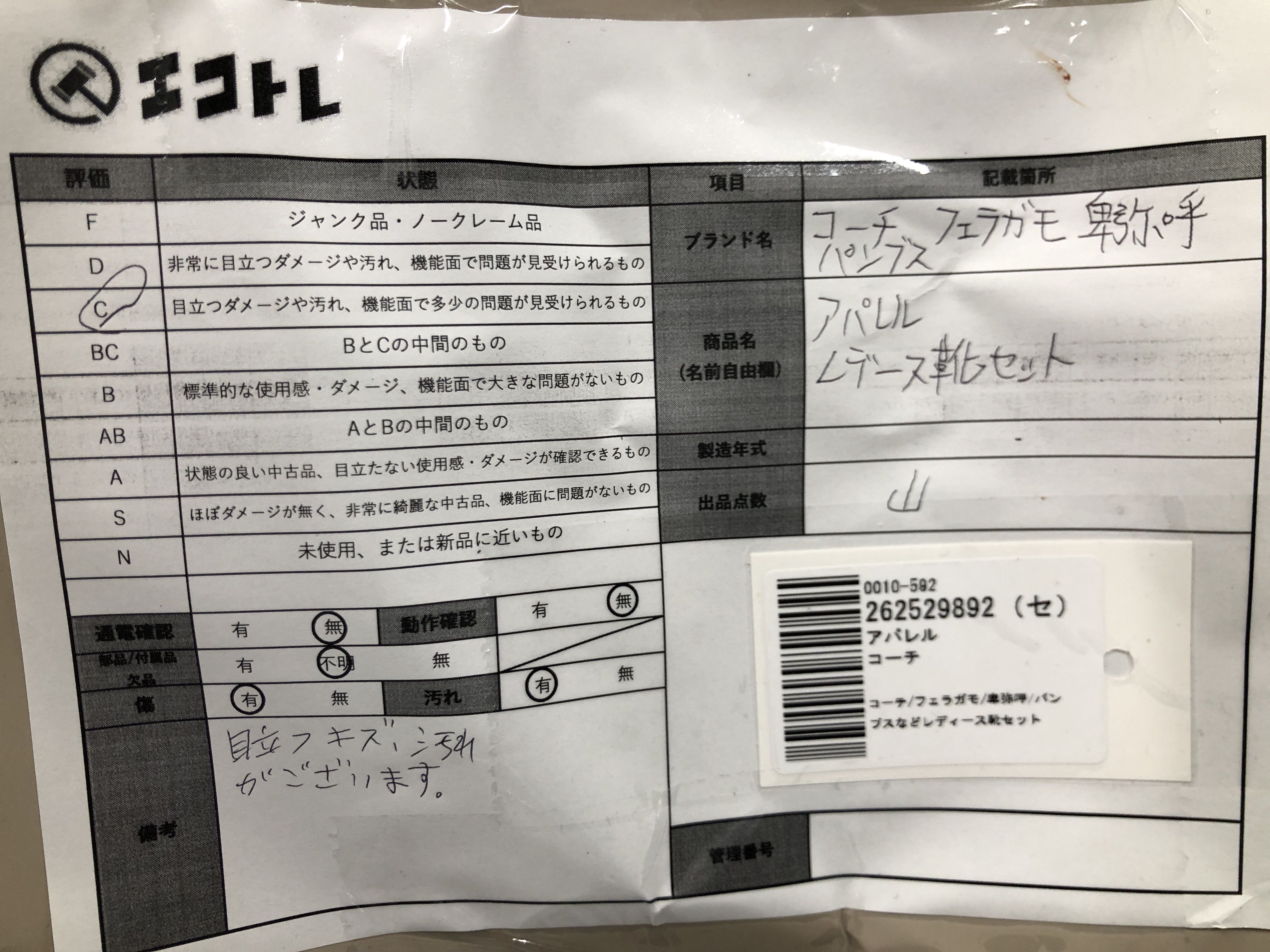 商品内容によって、JITBOXなどでの発送となる可能性がございます事ご理解下さい。年式などの商品情報詳細は写真にてご確認願います。※ご入札の際はご利用規約をよくお読みになってからのご参加お願いします。","タイプライン": "", "カテゴリ": "靴", "形状コード": "その他靴", "付属品コード": "", "シリアル・シール・型番": ""