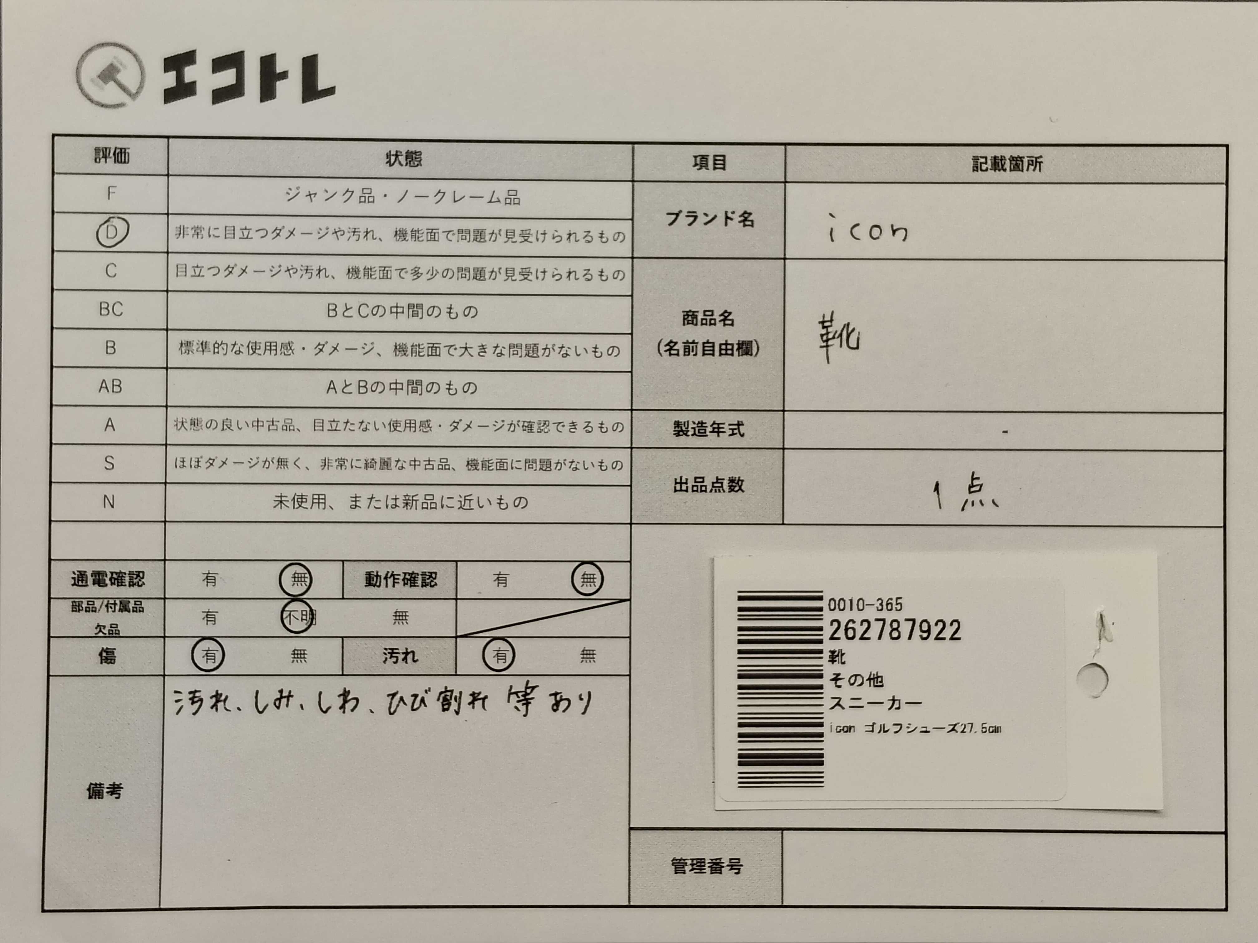 商品内容によって、JITBOXなどでの発送となる可能性がございます事ご理解下さい。年式などの商品情報詳細は写真にてご確認願います。※ご入札の際はご利用規約をよくお読みになってからのご参加お願いします。","タイプライン": "", "カテゴリ": "靴", "形状コード": "その他靴", "付属品コード": "", "シリアル・シール・型番": ""