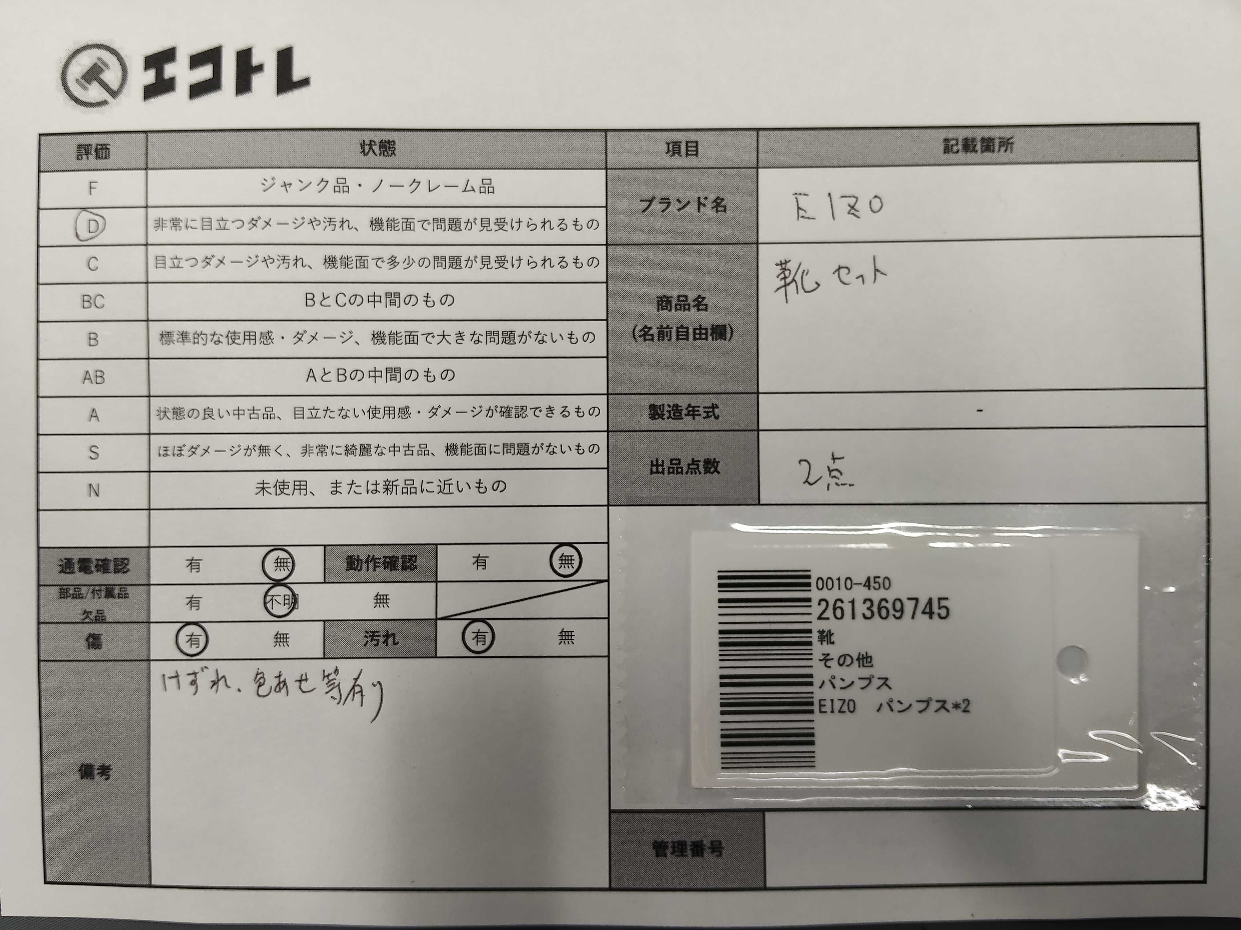 商品内容によって、JITBOXなどでの発送となる可能性がございます事ご理解下さい。年式などの商品情報詳細は写真にてご確認願います。※ご入札の際はご利用規約をよくお読みになってからのご参加お願いします。","タイプライン": "", "カテゴリ": "靴", "形状コード": "その他靴", "付属品コード": "", "シリアル・シール・型番": ""