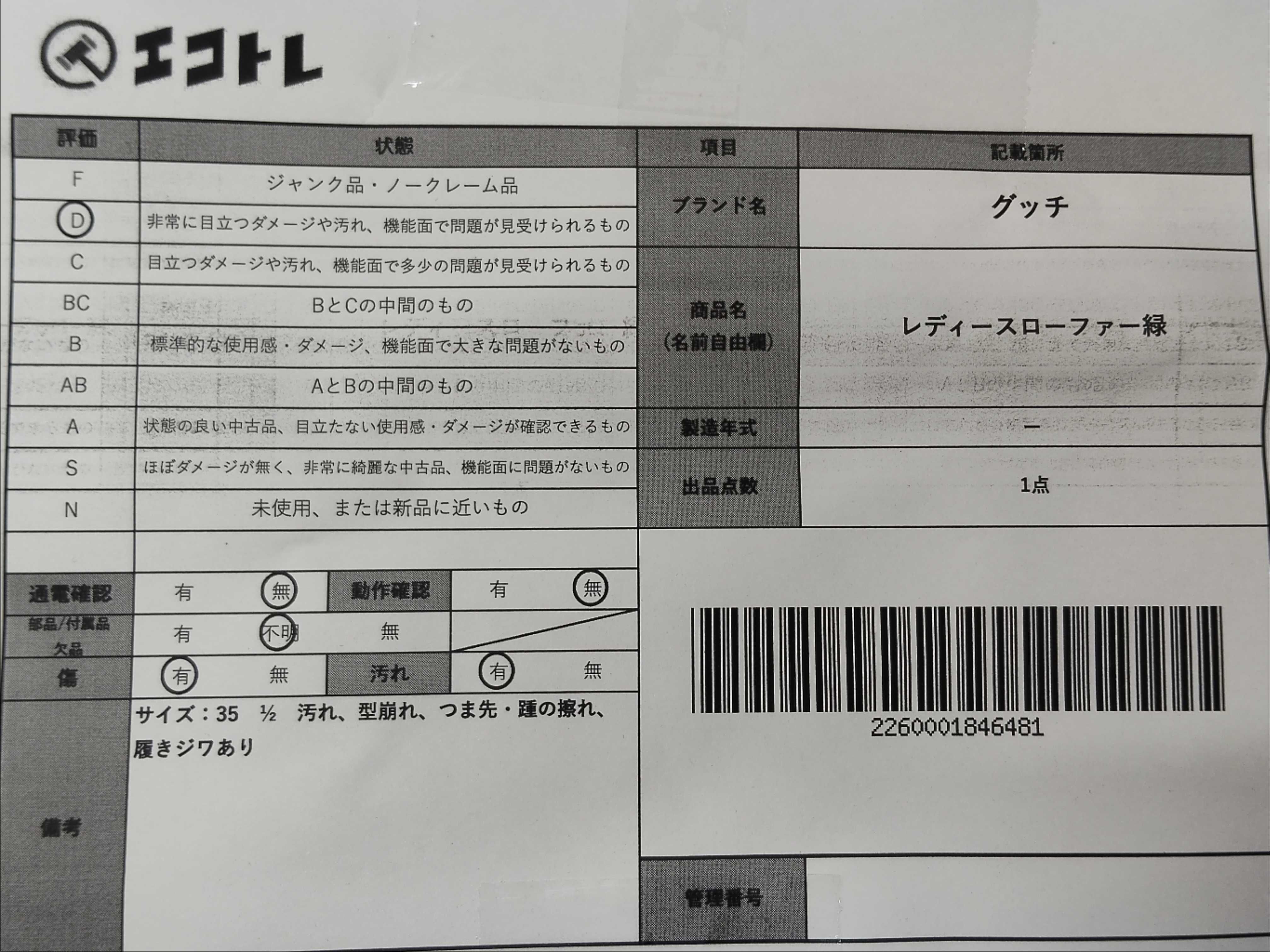 商品内容によって、JITBOXなどでの発送となる可能性がございます事ご理解下さい。年式などの商品情報詳細は写真にてご確認願います。※ご入札の際はご利用規約をよくお読みになってからのご参加お願いします。","タイプライン": "", "カテゴリ": "靴", "形状コード": "ローファー", "付属品コード": "", "シリアル・シール・型番": ""