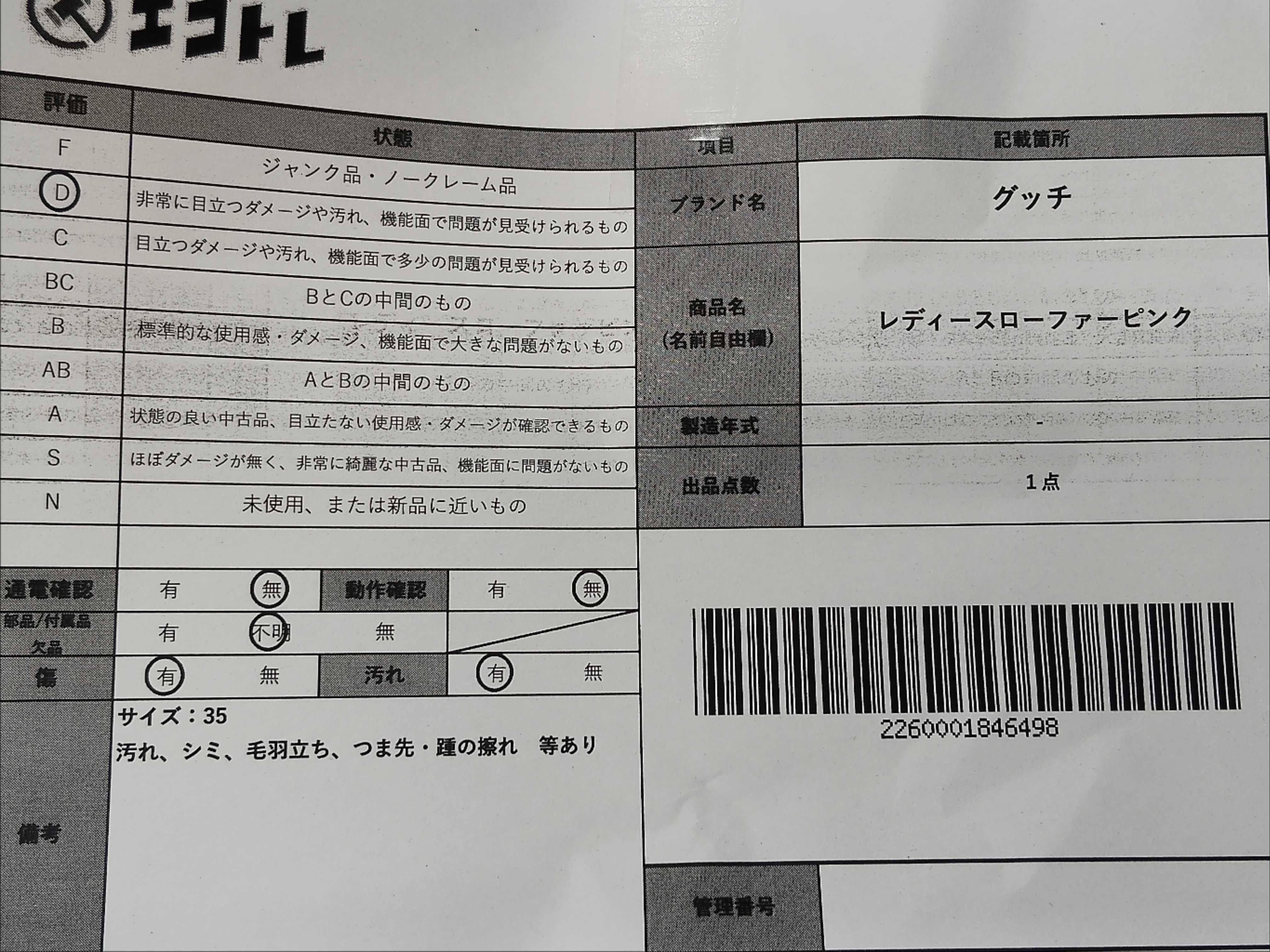 商品内容によって、JITBOXなどでの発送となる可能性がございます事ご理解下さい。年式などの商品情報詳細は写真にてご確認願います。※ご入札の際はご利用規約をよくお読みになってからのご参加お願いします。","タイプライン": "", "カテゴリ": "靴", "形状コード": "ローファー", "付属品コード": "", "シリアル・シール・型番": ""