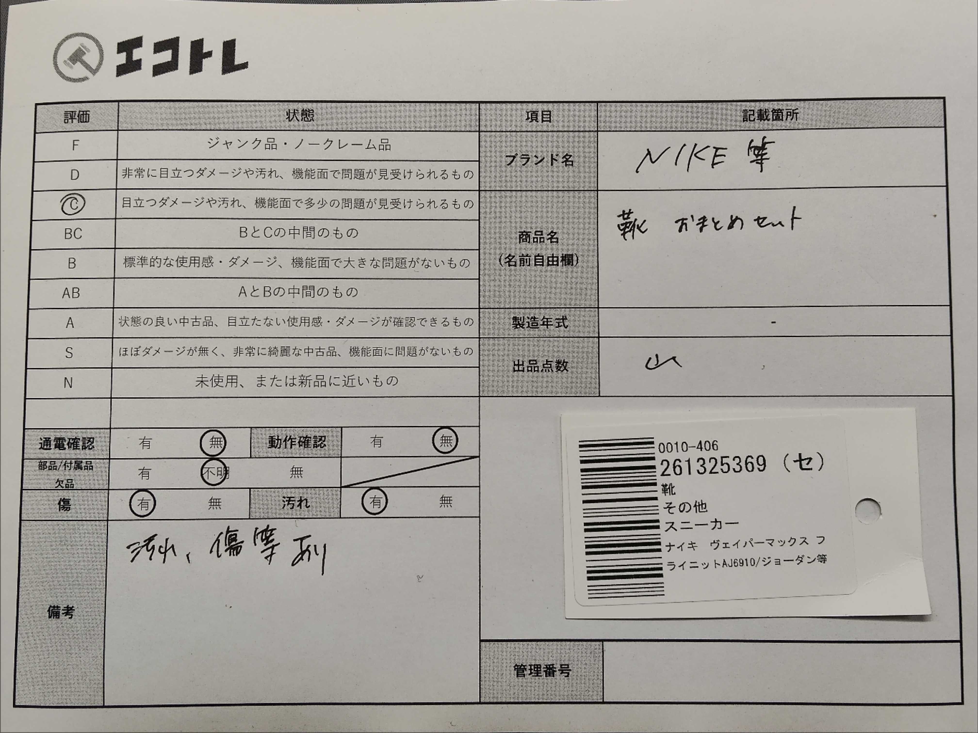 商品内容によって、JITBOXなどでの発送となる可能性がございます事ご理解下さい。年式などの商品情報詳細は写真にてご確認願います。※ご入札の際はご利用規約をよくお読みになってからのご参加お願いします。","タイプライン": "", "カテゴリ": "靴", "形状コード": "その他靴", "付属品コード": "", "シリアル・シール・型番": ""