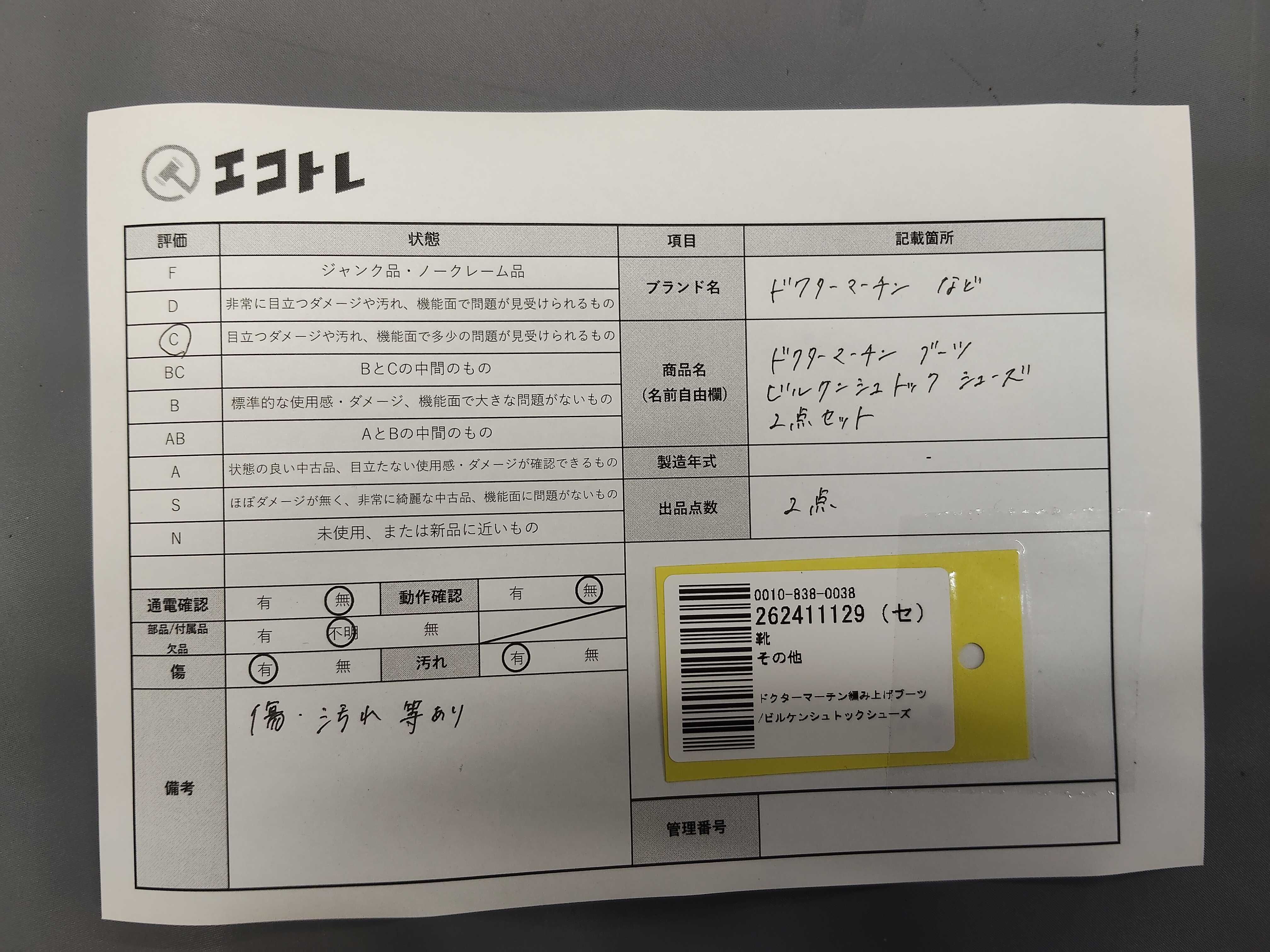 商品内容によって、JITBOXなどでの発送となる可能性がございます事ご理解下さい。年式などの商品情報詳細は写真にてご確認願います。※ご入札の際はご利用規約をよくお読みになってからのご参加お願いします。","タイプライン": "", "カテゴリ": "靴", "形状コード": "その他靴", "付属品コード": "", "シリアル・シール・型番": ""