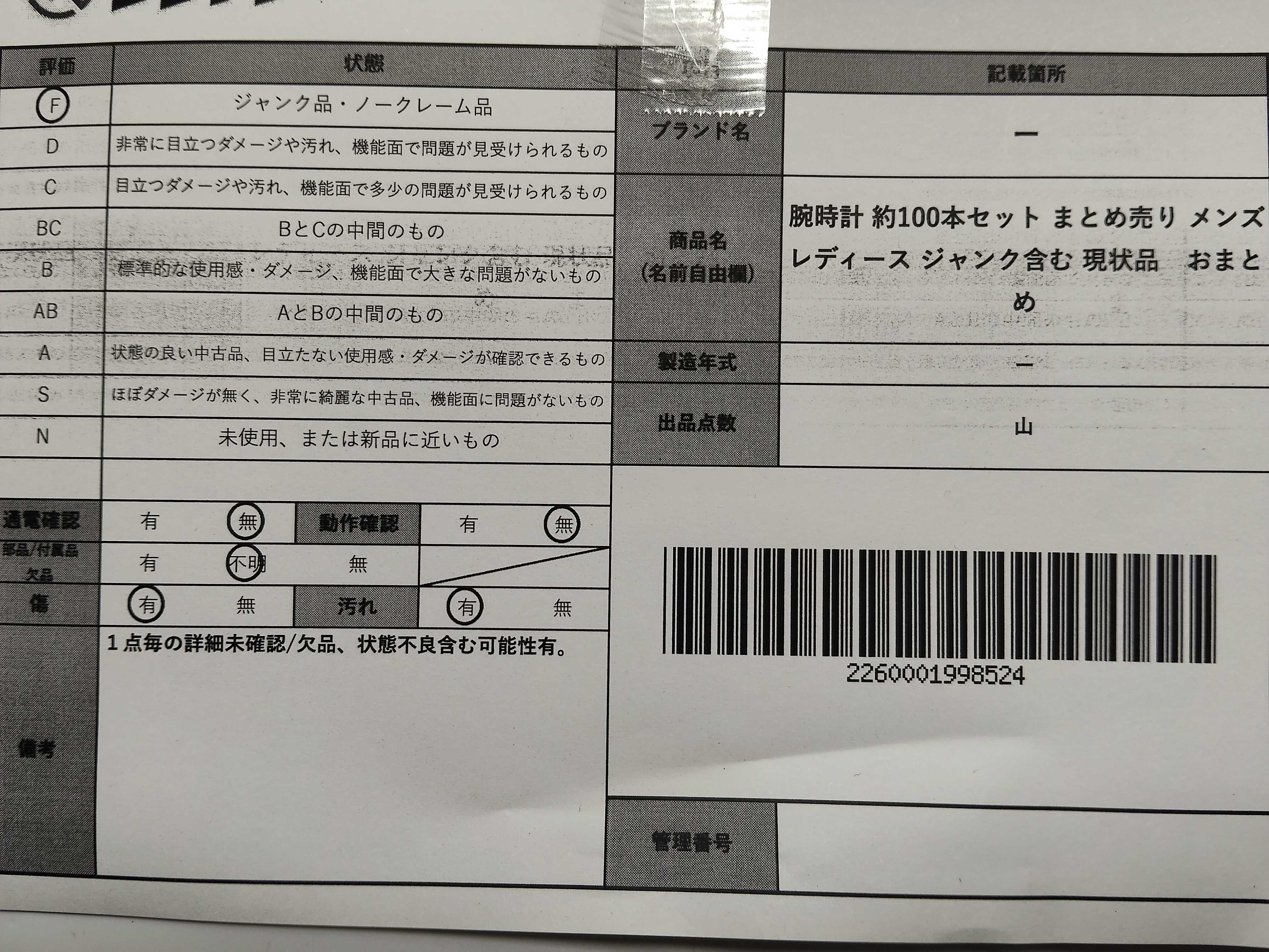 商品内容によって、JITBOXなどでの発送となる可能性がございます事ご理解下さい。年式などの商品情報詳細は写真にてご確認願います。※ご入札の際はご利用規約をよくお読みになってからのご参加お願いします。","タイプライン": "", "カテゴリ": "時計", "形状コード": "時計まとめ", "付属品コード": "", "シリアル・シール・型番": ""