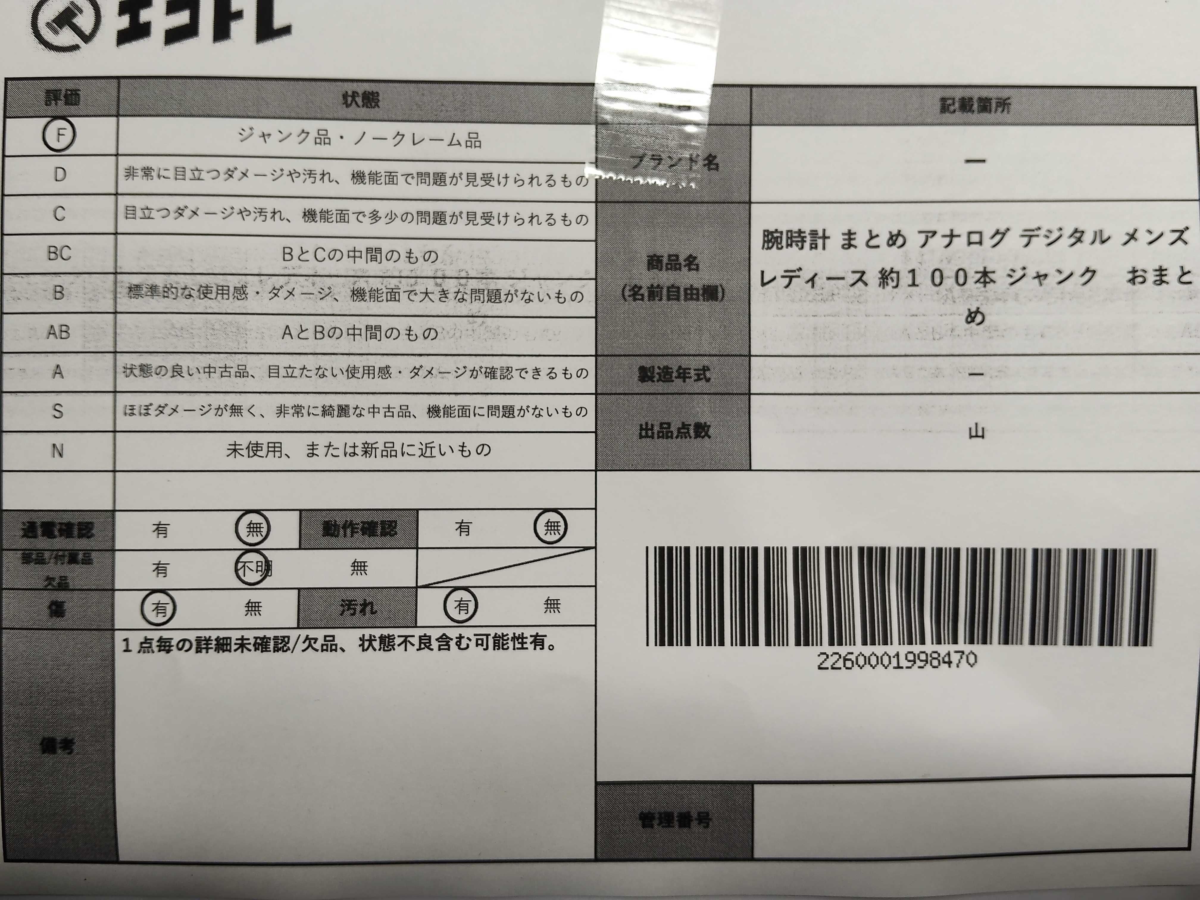 商品内容によって、JITBOXなどでの発送となる可能性がございます事ご理解下さい。年式などの商品情報詳細は写真にてご確認願います。※ご入札の際はご利用規約をよくお読みになってからのご参加お願いします。","タイプライン": "", "カテゴリ": "時計", "形状コード": "時計まとめ", "付属品コード": "", "シリアル・シール・型番": ""