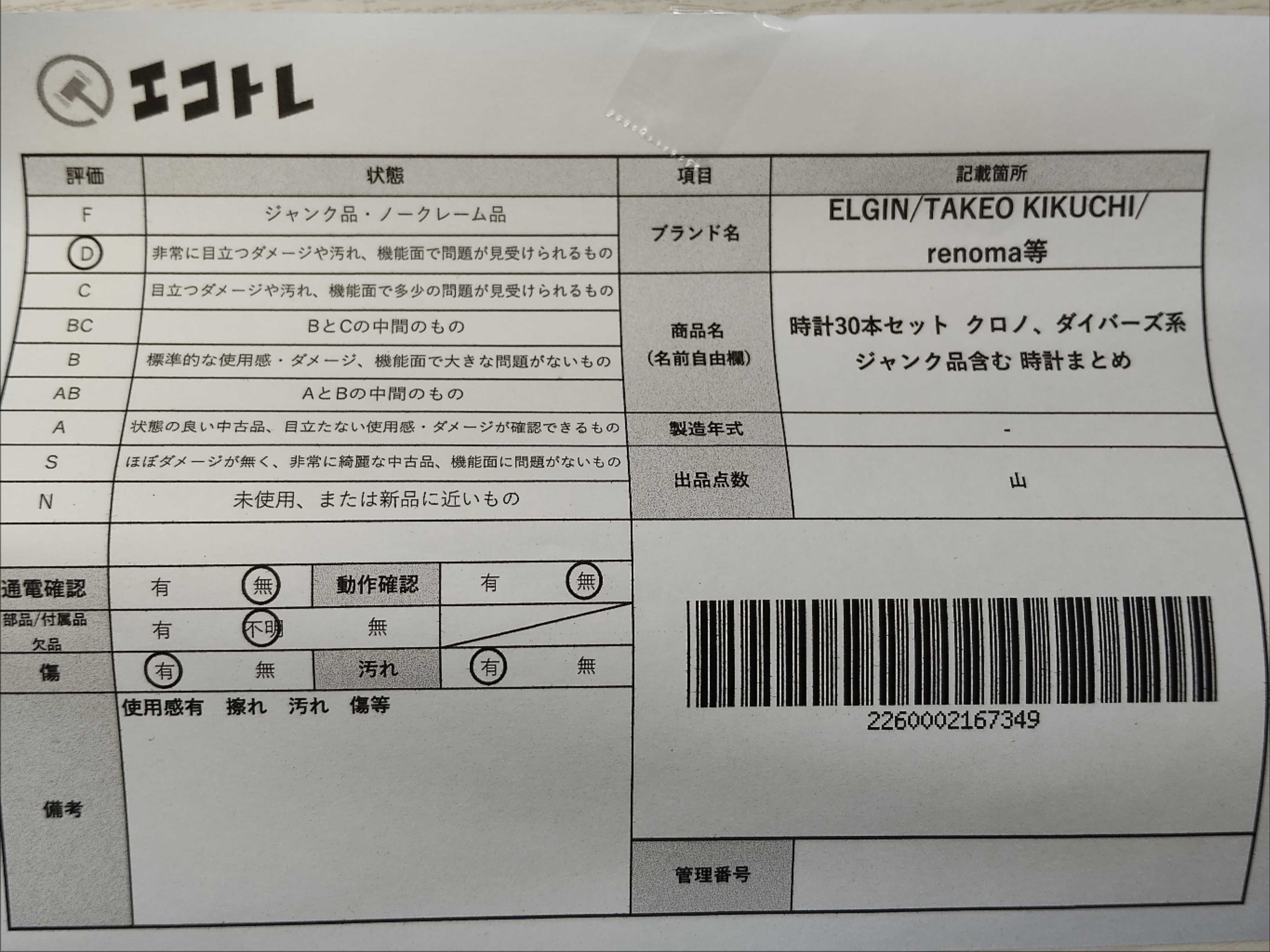 商品内容によって、JITBOXなどでの発送となる可能性がございます事ご理解下さい。年式などの商品情報詳細は写真にてご確認願います。※ご入札の際はご利用規約をよくお読みになってからのご参加お願いします。","タイプライン": "", "カテゴリ": "時計", "形状コード": "時計まとめ", "付属品コード": "", "シリアル・シール・型番": ""