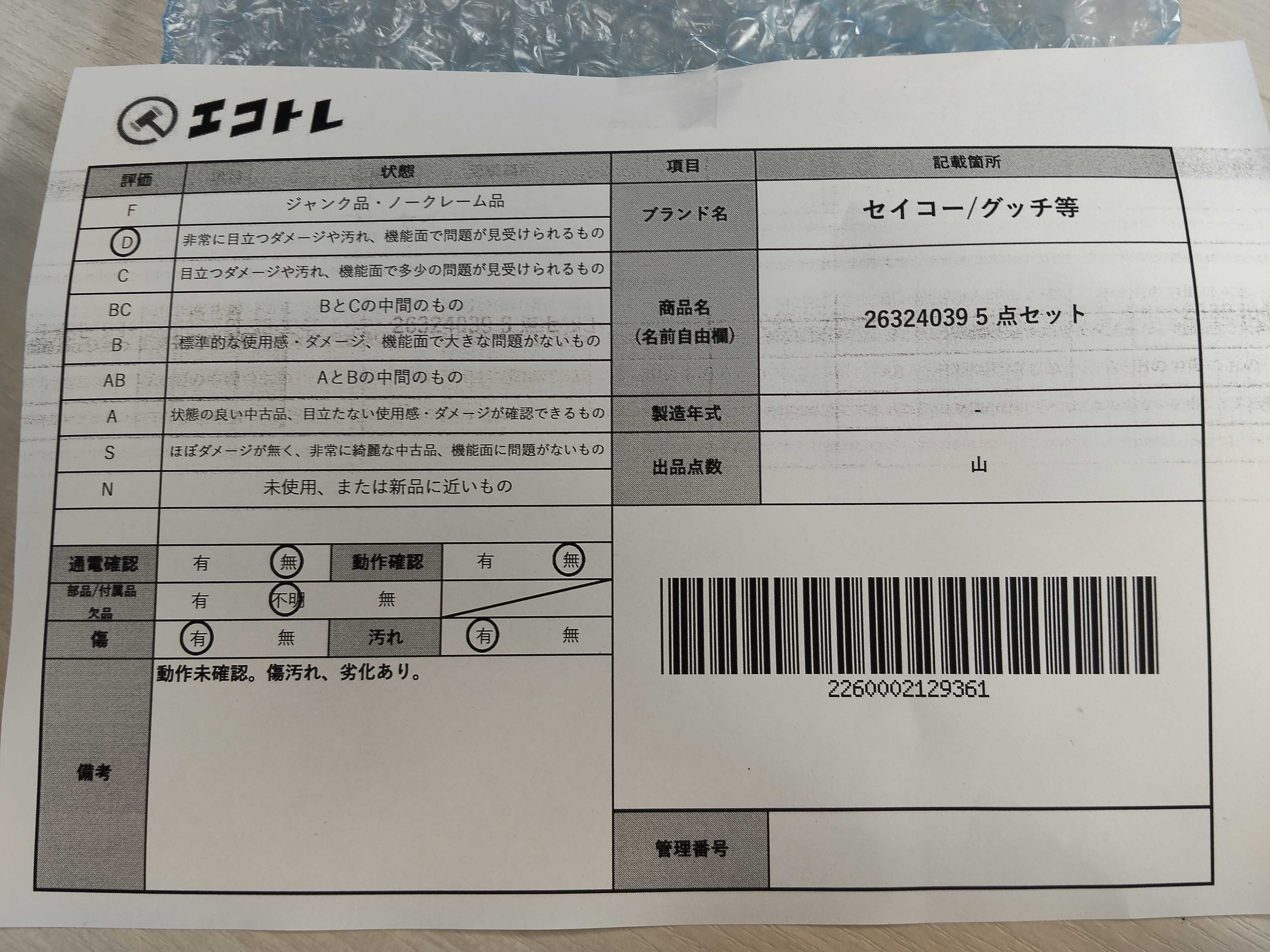 商品内容によって、JITBOXなどでの発送となる可能性がございます事ご理解下さい。年式などの商品情報詳細は写真にてご確認願います。※ご入札の際はご利用規約をよくお読みになってからのご参加お願いします。","タイプライン": "", "カテゴリ": "時計", "形状コード": "時計まとめ", "付属品コード": "", "シリアル・シール・型番": ""