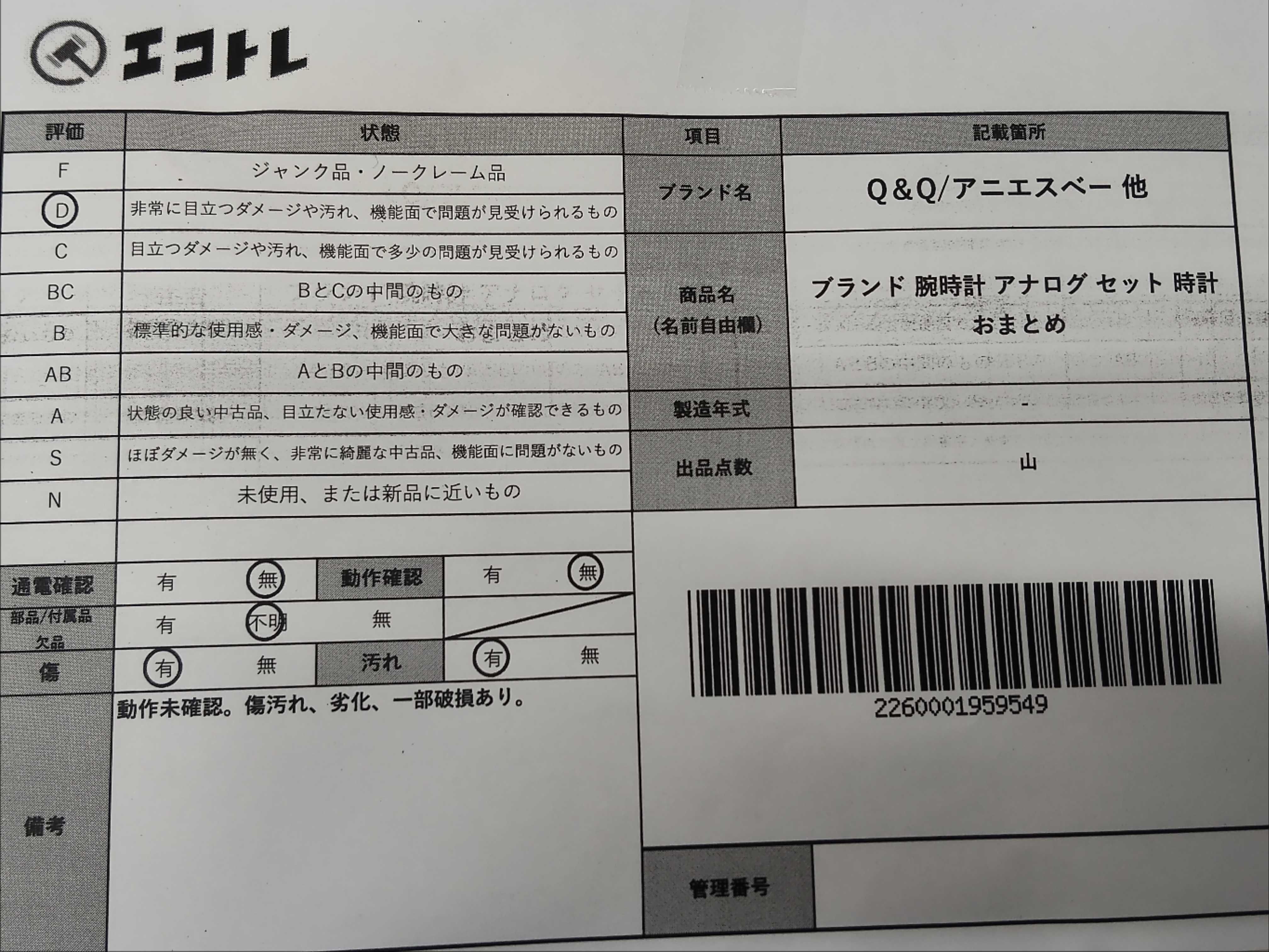 商品内容によって、JITBOXなどでの発送となる可能性がございます事ご理解下さい。年式などの商品情報詳細は写真にてご確認願います。※ご入札の際はご利用規約をよくお読みになってからのご参加お願いします。","タイプライン": "", "カテゴリ": "時計", "形状コード": "時計まとめ", "付属品コード": "", "シリアル・シール・型番": ""