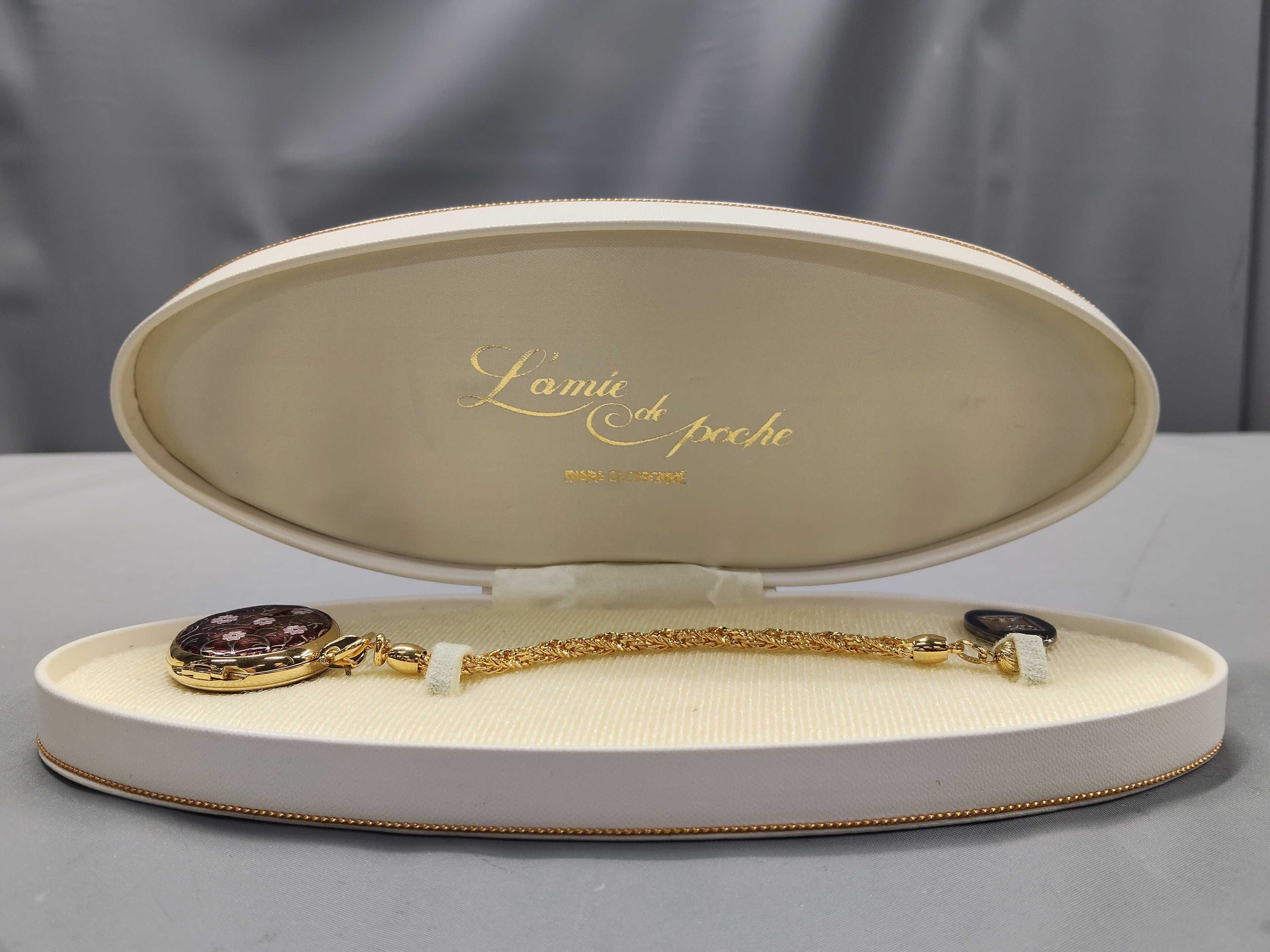 (11948_0142)▼ラミー 天皇陛下御在位60周年 七宝懐中時計 純銀刻印有