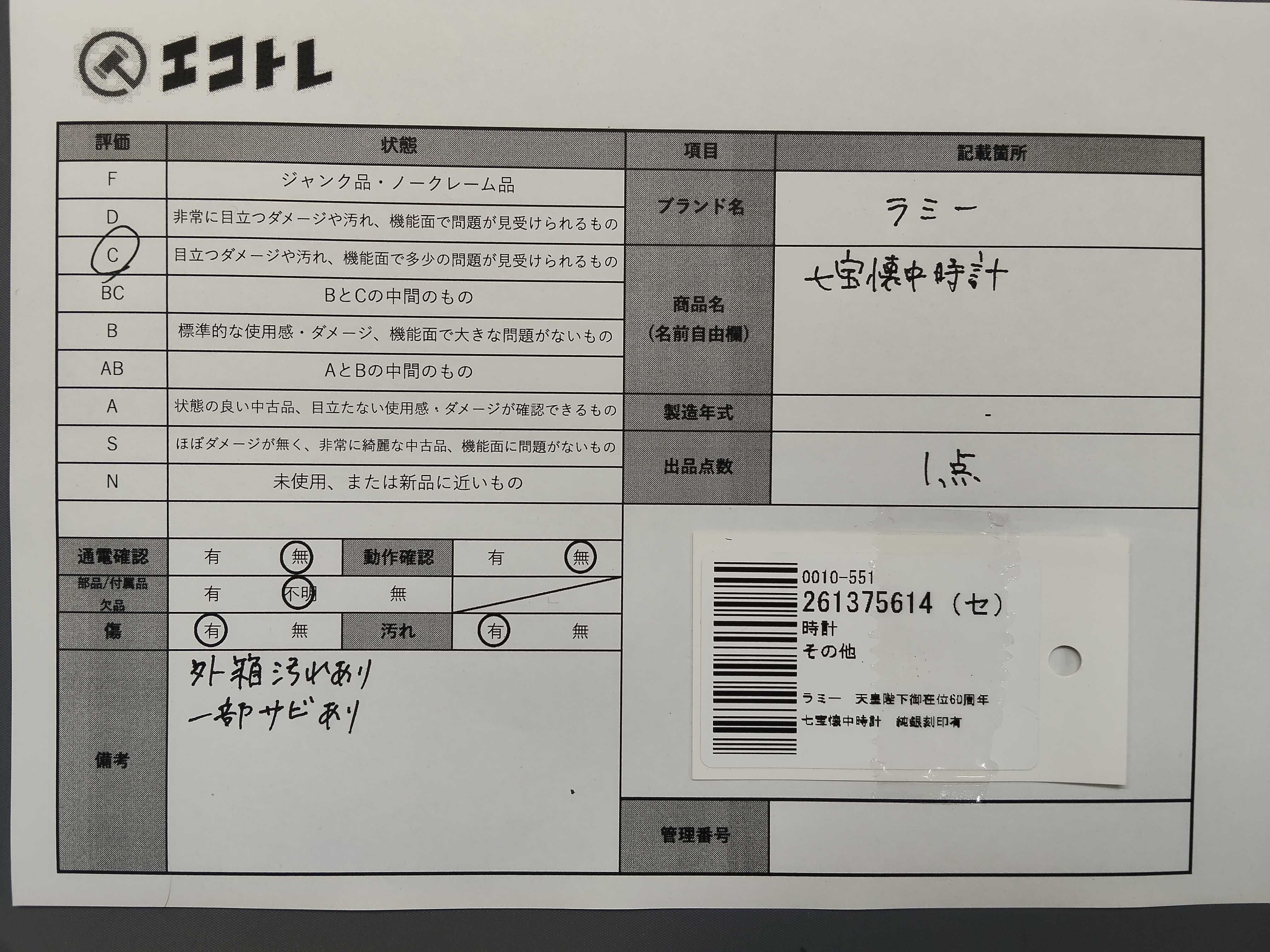 商品内容によって、JITBOXなどでの発送となる可能性がございます事ご理解下さい。年式などの商品情報詳細は写真にてご確認願います。※ご入札の際はご利用規約をよくお読みになってからのご参加お願いします。","タイプライン": "", "カテゴリ": "時計", "形状コード": "懐中時計", "付属品コード": "", "シリアル・シール・型番": ""