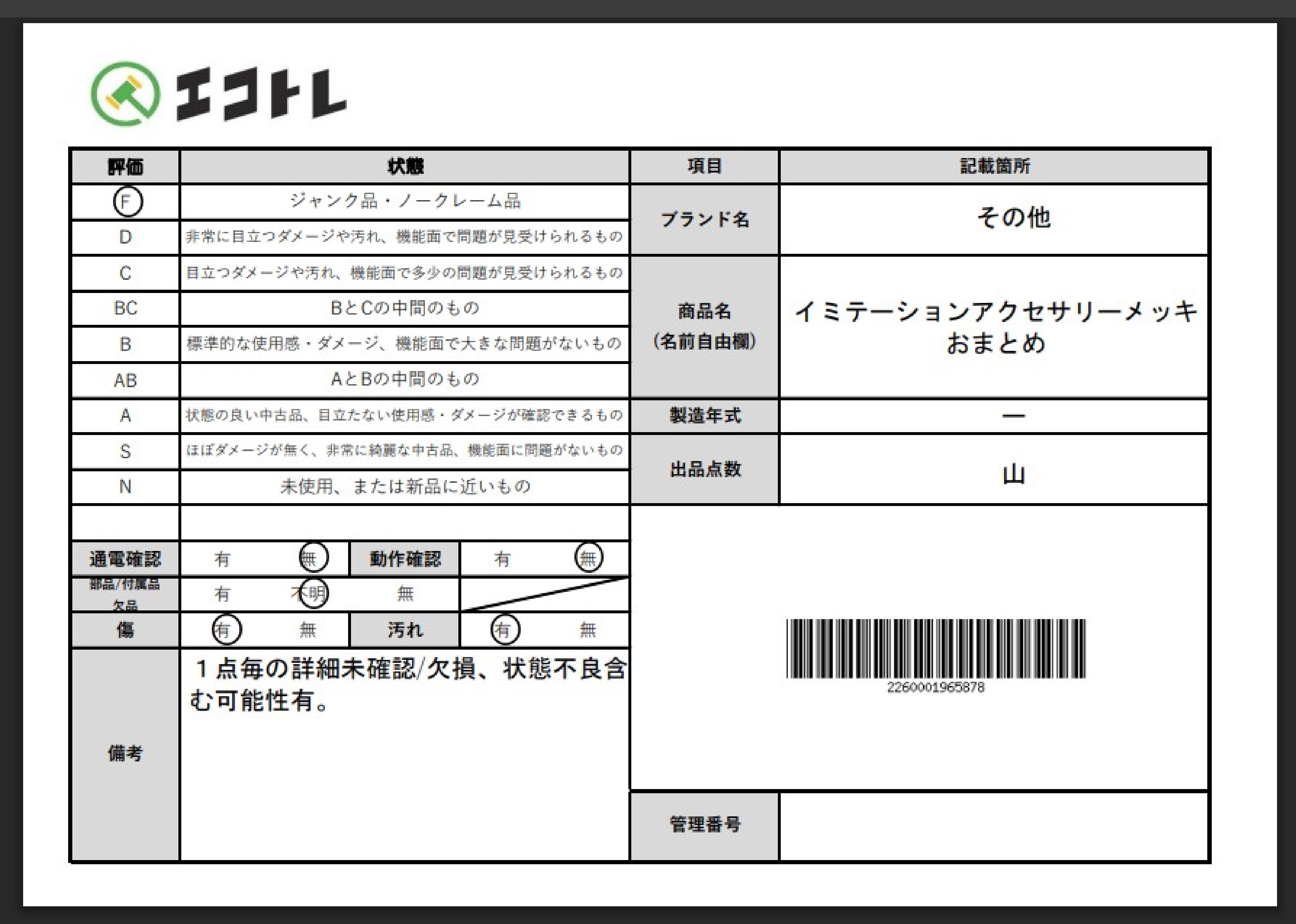 商品内容によって、JITBOXなどでの発送となる可能性がございます事ご理解下さい。年式などの商品情報詳細は写真にてご確認願います。※ご入札の際はご利用規約をよくお読みになってからのご参加お願いします。","タイプライン": "", "カテゴリ": "アクセサリー", "形状コード": "アクセサリーまとめ", "付属品コード": "", "シリアル・シール・型番": ""