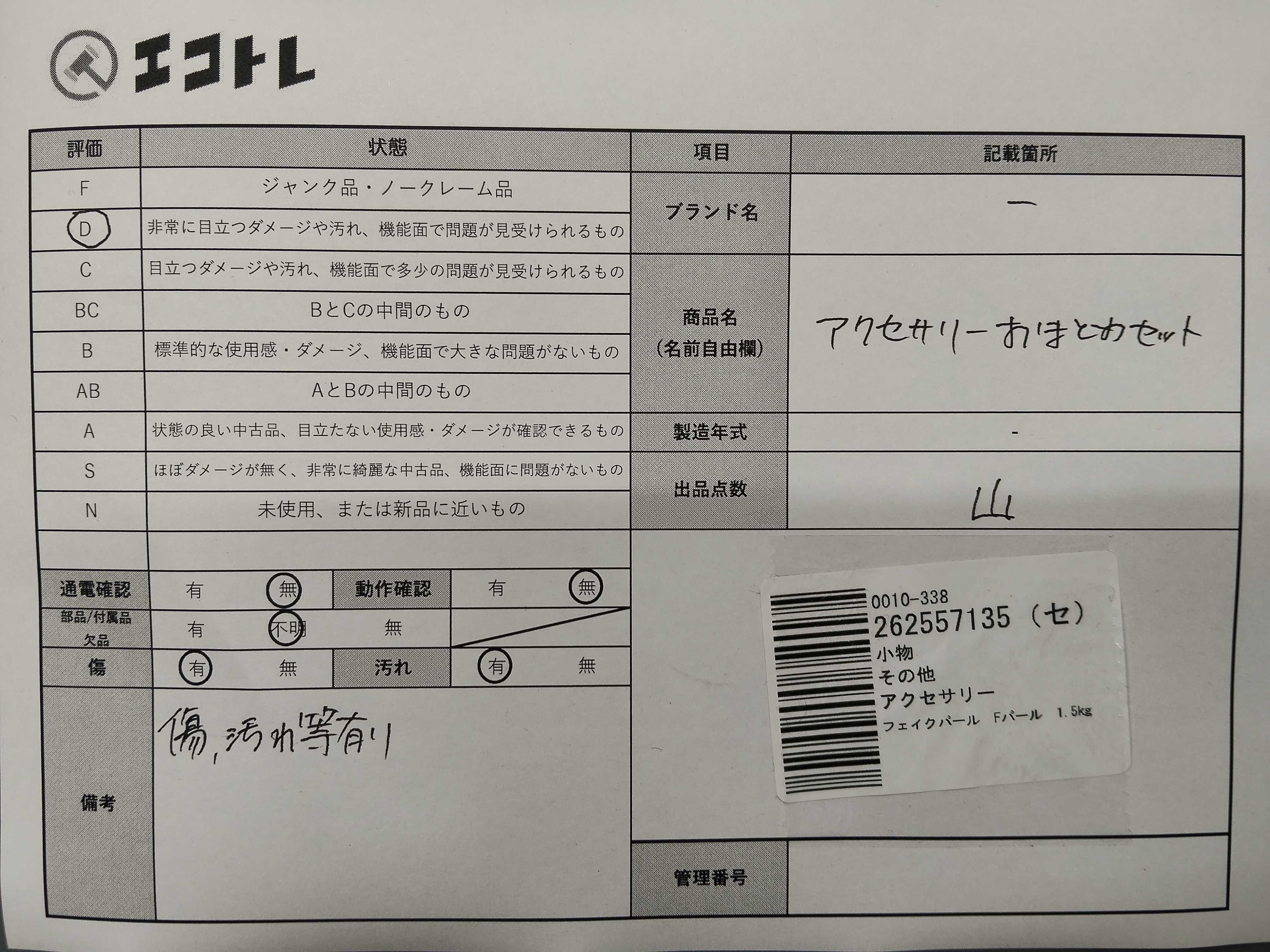 商品内容によって、JITBOXなどでの発送となる可能性がございます事ご理解下さい。年式などの商品情報詳細は写真にてご確認願います。※ご入札の際はご利用規約をよくお読みになってからのご参加お願いします。","タイプライン": "", "カテゴリ": "アクセサリー", "形状コード": "アクセサリーまとめ", "付属品コード": "", "シリアル・シール・型番": ""
