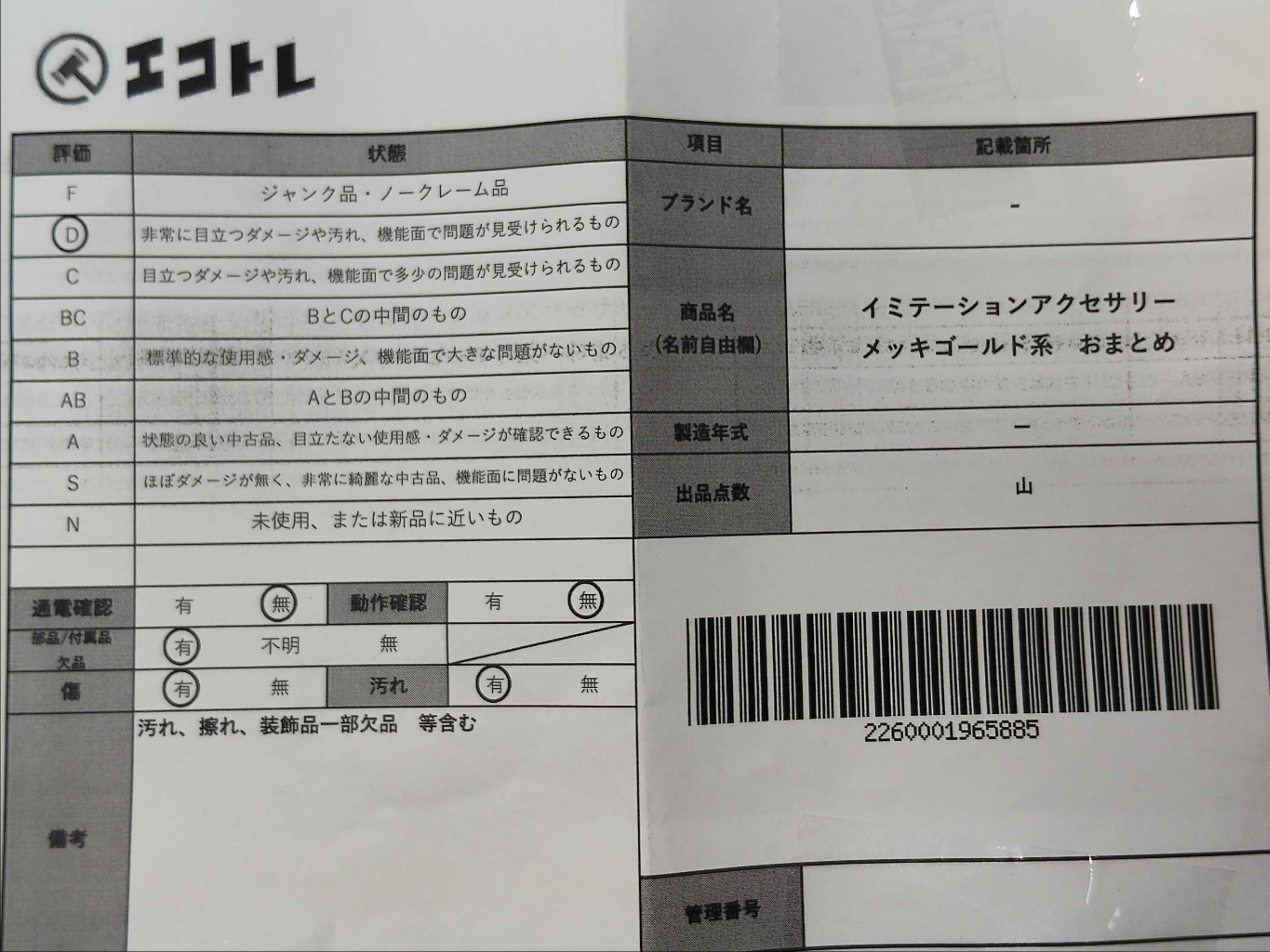 商品内容によって、JITBOXなどでの発送となる可能性がございます事ご理解下さい。年式などの商品情報詳細は写真にてご確認願います。※ご入札の際はご利用規約をよくお読みになってからのご参加お願いします。","タイプライン": "", "カテゴリ": "アクセサリー", "形状コード": "アクセサリーまとめ", "付属品コード": "", "シリアル・シール・型番": ""