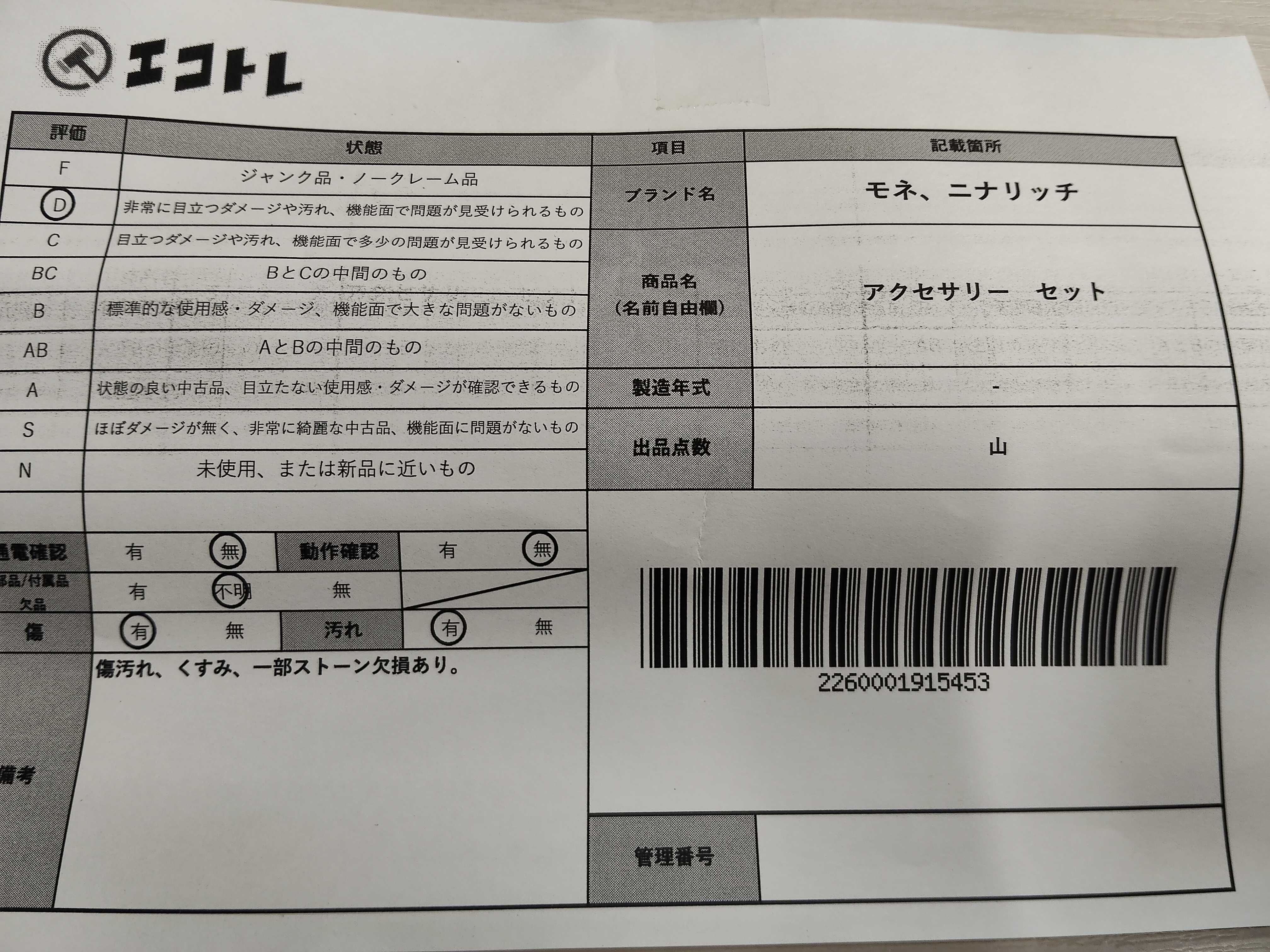 商品内容によって、JITBOXなどでの発送となる可能性がございます事ご理解下さい。年式などの商品情報詳細は写真にてご確認願います。※ご入札の際はご利用規約をよくお読みになってからのご参加お願いします。","タイプライン": "", "カテゴリ": "アクセサリー", "形状コード": "アクセサリーまとめ", "付属品コード": "", "シリアル・シール・型番": ""